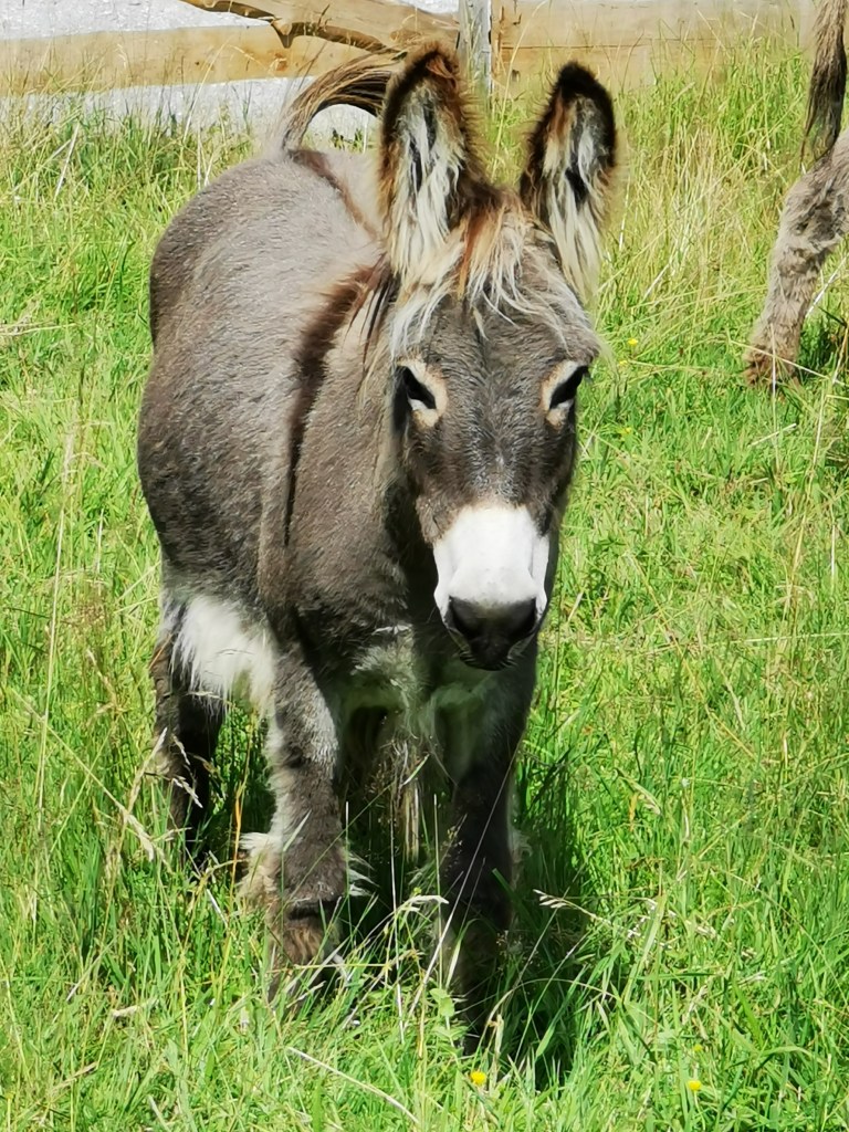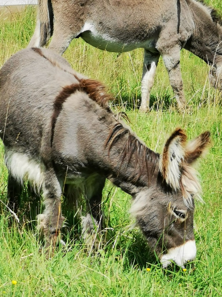 Richtung Hiebammen-Hütte in Brilon traf ich bei einem Spaziergang ein paar Esel auf einer Wiese an. Ein kleines, vielleicht ein paar Monate altes Jungtier.