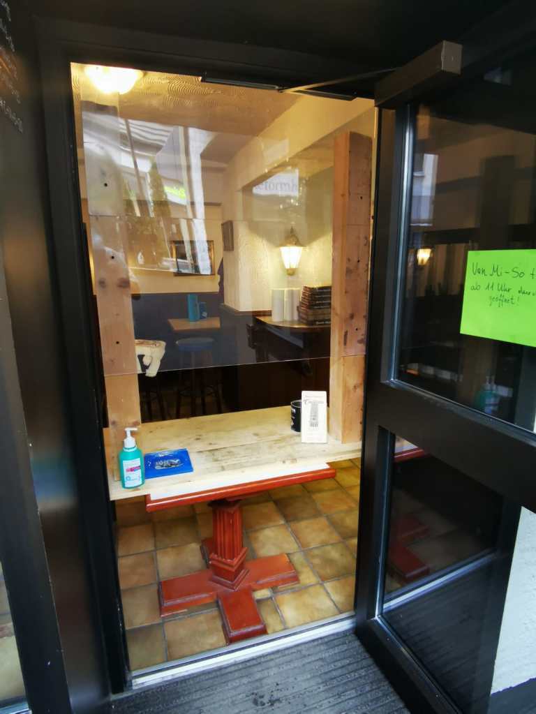 In den Sommermonaten gibt es eine barrierefreie Außenterrasse. Um in das Restaurant zu gelangen müssen zwei Stufen bis zu einem Podest und dann noch einmal zwei Stufen bewältigt werden. Ein rechter Handlauf kann bei einigen Erkrankungen helfen. Für Rollstuhlfahrer jedoch nicht geeignet. Die Tür geht nach außen auf, man muss schon kräftig daran ziehen. Das Ambiente und die Einrichtung ist im einfachen rustikalem Stil, sehr sauber und gepflegt.