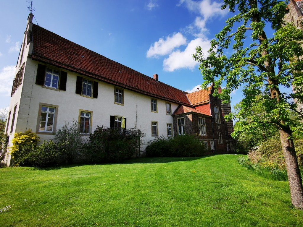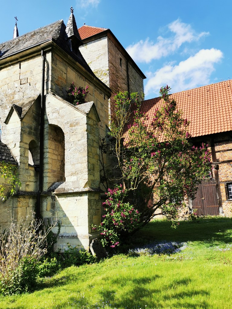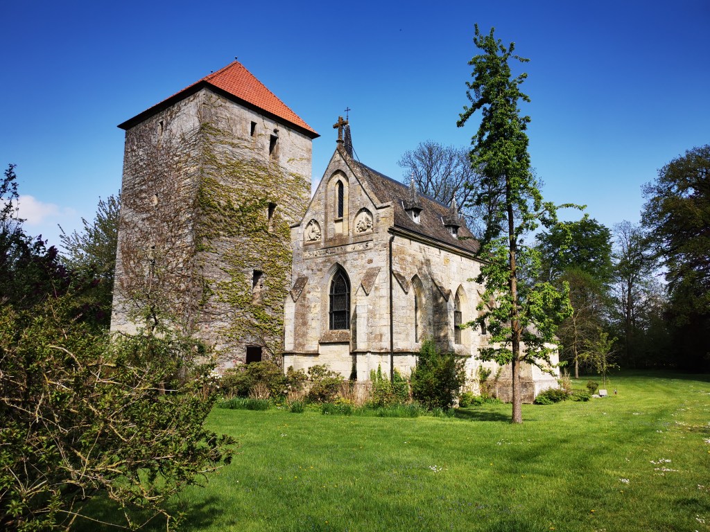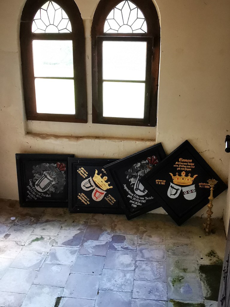 Man begibt sich auf eine kleine Zeitreise in die Vergangenheit an der Wasserburg. Derzeit stehen dort Gerüste am alten denkmalgeschütztem Hauptschloss und Rundturm, hier wird kräftig restauriert. Auf dem Gelände selbst stehen aus verschiedenen Epochen Gebäude bis hin zu einem modernen Trakt. Einmal durch den Garten und ein Blick hinter dem Schloss erlaubt den Blick auf einen vierstöckigen Turmspeicher sowie eine Kapelle aus dem 13. Jahrhundert. Ist schon sehr beeindruckend eine so alte Kapelle, die 1870 umgebaut wurde, anschauen zu dürfen. In die Kapelle zeigen Tafeln die Historie der Twickel auf. Es gibt ebenfalls eine Gruft, wo Vorfahren ihre letzte Ruhe gefunden haben. Schaut man an der Fassade des Turmspeichers hoch, befinden sich dort alte Schießschächte, die noch aus der Pfeil- und Bogenzeit stammen. Auf dem Gutshof sind sämtliche Wege mit feinem Kiesel belegt.