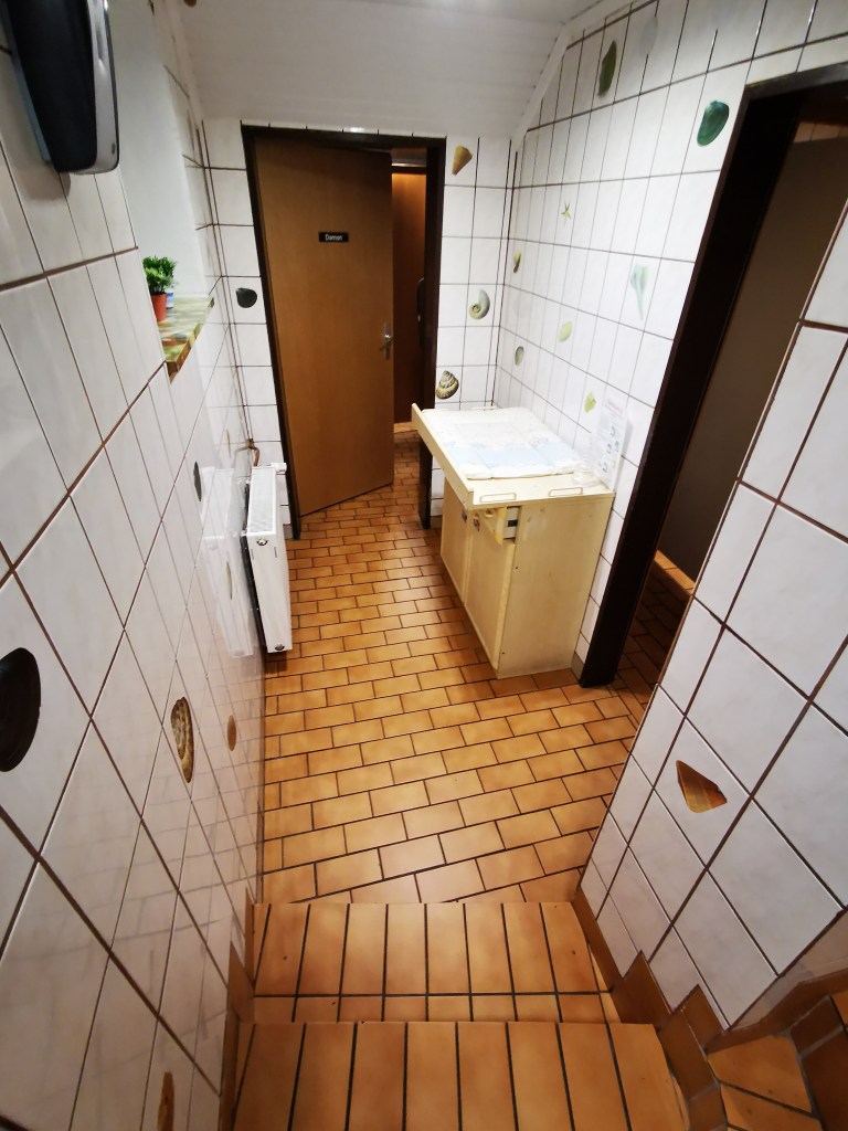 Trotz dieser Herausforderungen können größere Rollstühle über die Rampe und ins Restaurant gelangen, und es gibt viel Platz im Restaurant für Menschen mit Handicap. Es gibt auch eine überdachte Terrasse, die zum Essen im Freien einlädt. Es ist jedoch wichtig zu betonen, dass die sanitären Anlagen im Keller liegen und es keinen Treppenlift gibt, um den Zugang für Menschen mit Behinderungen zu erleichtern. Stattdessen gibt es nur einen Handlauf, um den Abstieg in den Keller zu erleichtern. Dies kann für einige Menschen mit Behinderungen unangenehm sein und den Besuch einschränken.