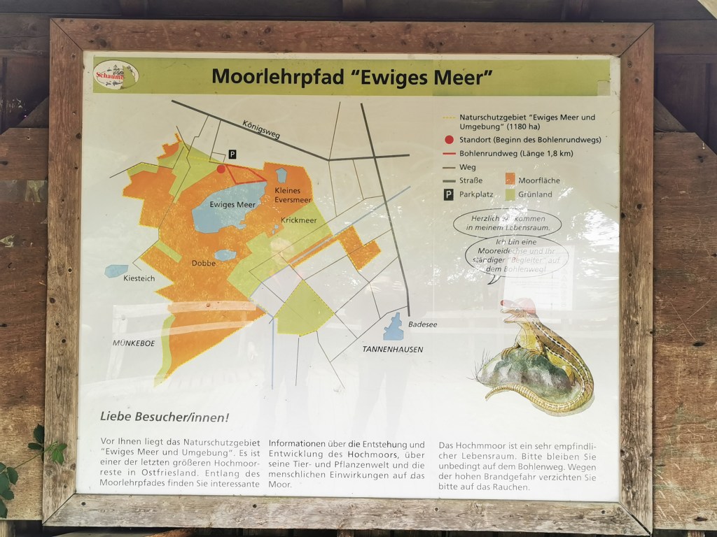 Der Moorlehrpfad im Naturschutzgebiet Ewiges Meer in Eversmeer ist ein beeindruckendes Landschaftserlebnis und bietet eine einzigartige Möglichkeit, die Natur hautnah zu erleben.