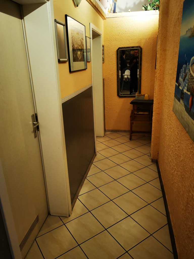 Der Eingang hatte eine kleine Kante von ungefähr 2 Zentimetern, die für mich als Person mit dem Merkzeichen „aG“ im Behindertenausweis zu einer potenziellen Stolperfalle werden könnte. Es gab eine überdachte Terrasse im Außenbereich, die ebenerdig zum Restaurant führte, und die Tür war breit genug. Im Restaurant selbst gab es teilweise barrierefreie Bereiche, jedoch auch einige Nischen mit Stufen, was das Manövrieren eines Rollstuhls etwas erschweren könnte.