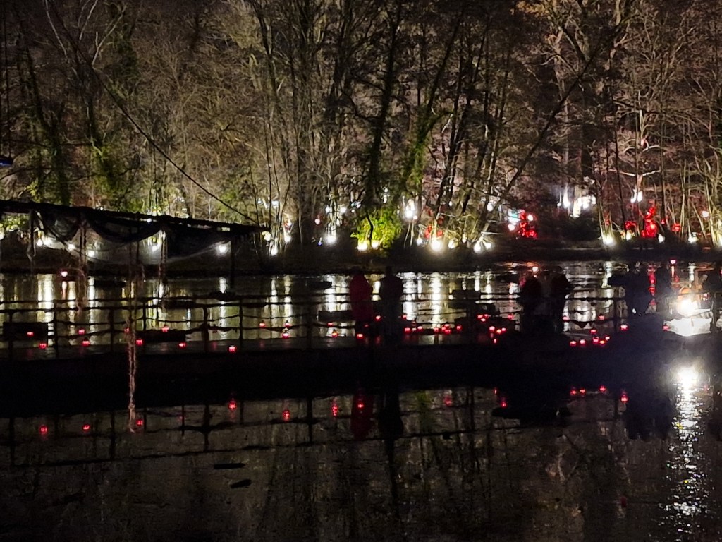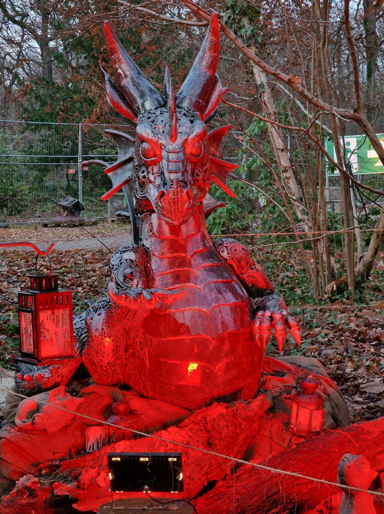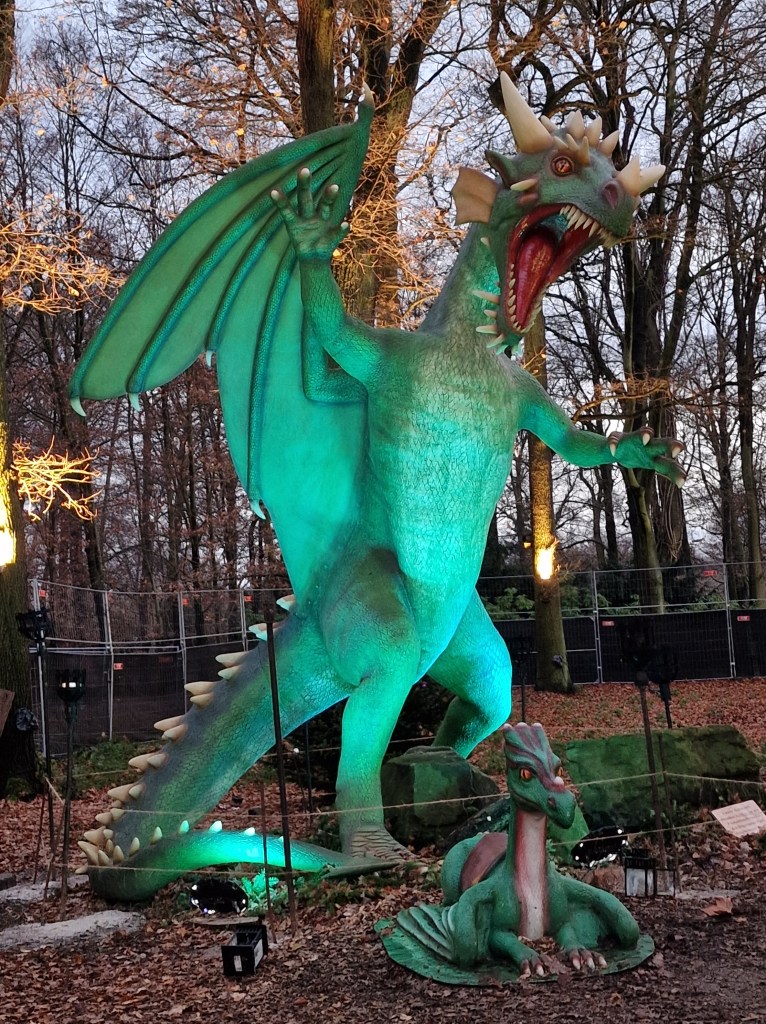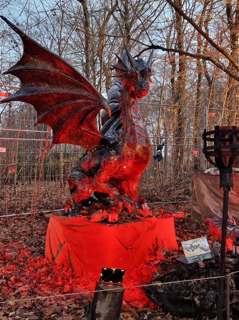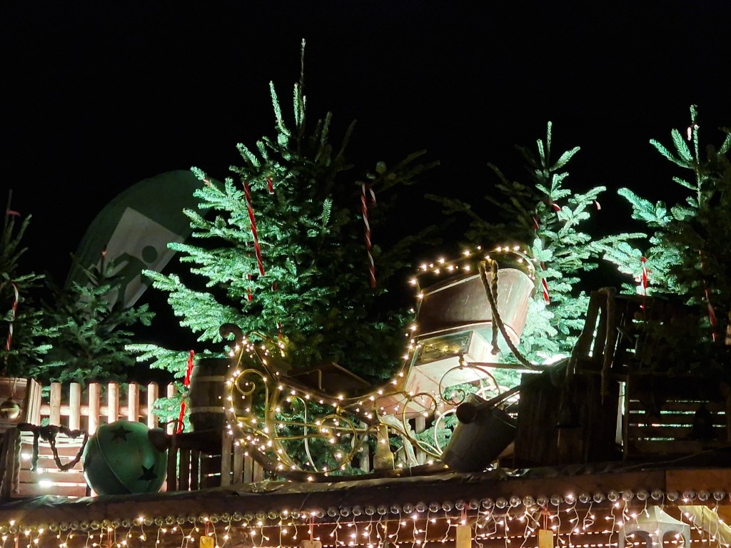 Ein kurzer Spaziergang durch ein kleines Waldstück mit unebenem Boden, knapp 50 m, führte mich zu einem barrierefreien Weg. Bis zu den drei Eingängen des Lichterweihnachtsmarktes lagen noch einige hundert Meter vor mir. Hier wünschte ich, dass die Behindertenparkplätze etwas näher zum Eingang organisiert werden könnte.