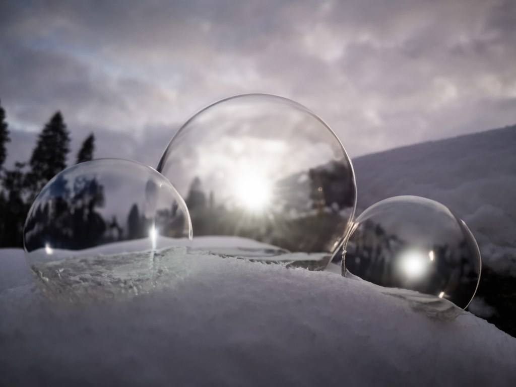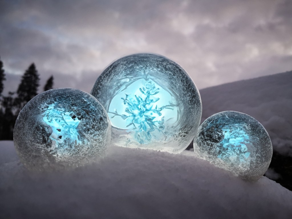 In der Stille des winterlichen Schneefalls enthüllen sich zauberhafte Lichtkugeln, die die Landschaft in ein funkelndes Märchen verwandeln. Die Schneekristalle schimmern im sanften Licht, während die beleuchteten Kugeln eine magische Atmosphäre erschaffen. Jede Kugel wirft ein warmes Glühen auf die schneebedeckte Szenerie und zaubert eine romantische Stimmung hervor, die die Winterlandschaft in ein bezauberndes Lichtspiel verwandelt. Es ist, als ob die Kugeln selbst Teil des winterlichen Zauberwerks sind, das die Natur und die Lichter in harmonischer Einheit vereint.