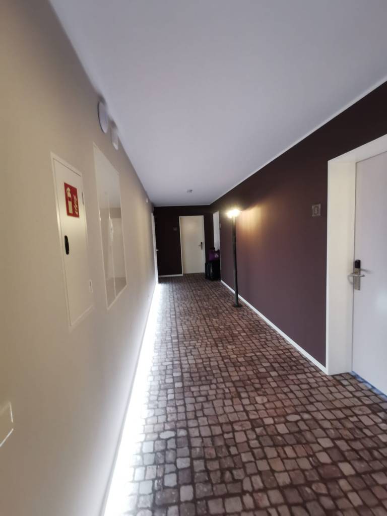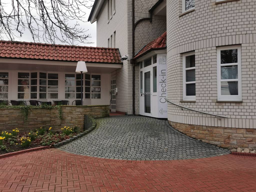 Beim Betreten des ARtroom werden Sie von einem einladenden Ambiente begrüßt. Der Haupteingang verfügt über drei Stufen mit Handläufen auf beiden Seiten, aber keine Sorge – links von den Stufen führt ein schräger, barrierefreier Aufgang aus roten und grauen Steinen zu einem barrierefreien Check-in und out Service. Dieser Bereich ist sehr gut zugänglich und eignet sich für jegliche Art von Behinderungen.