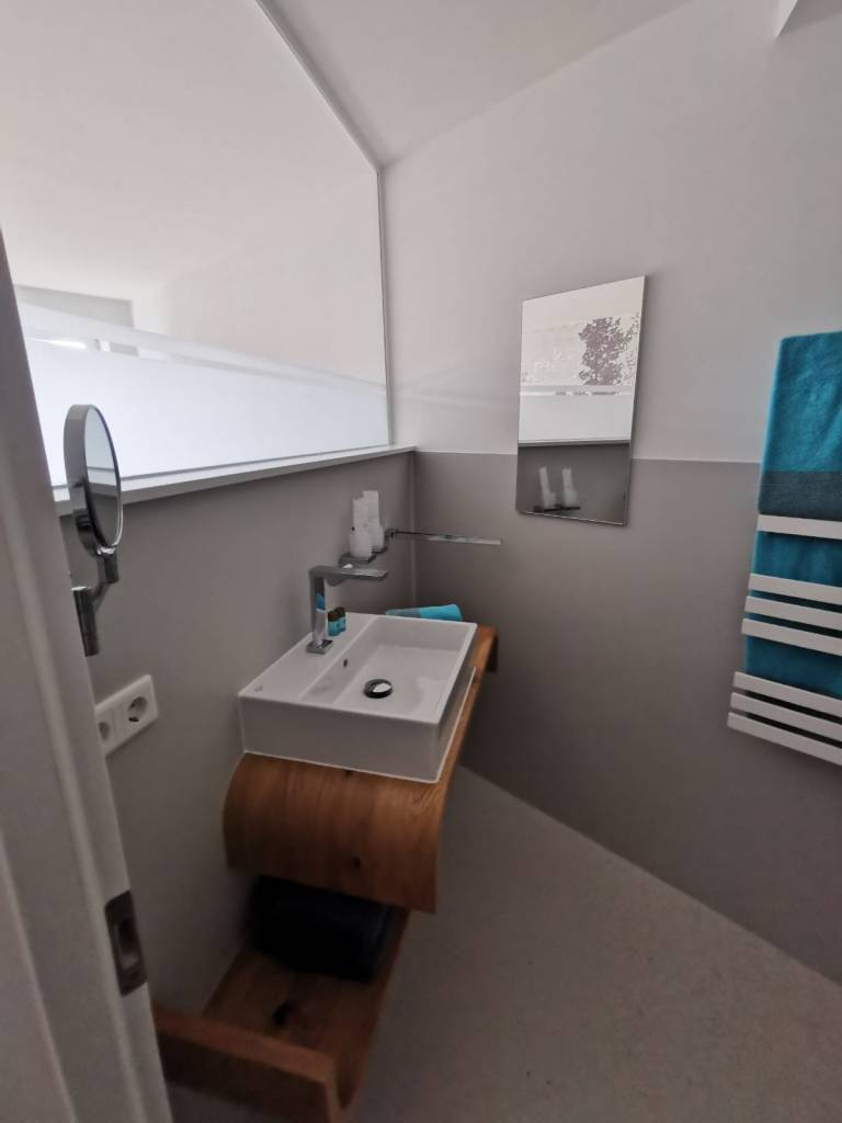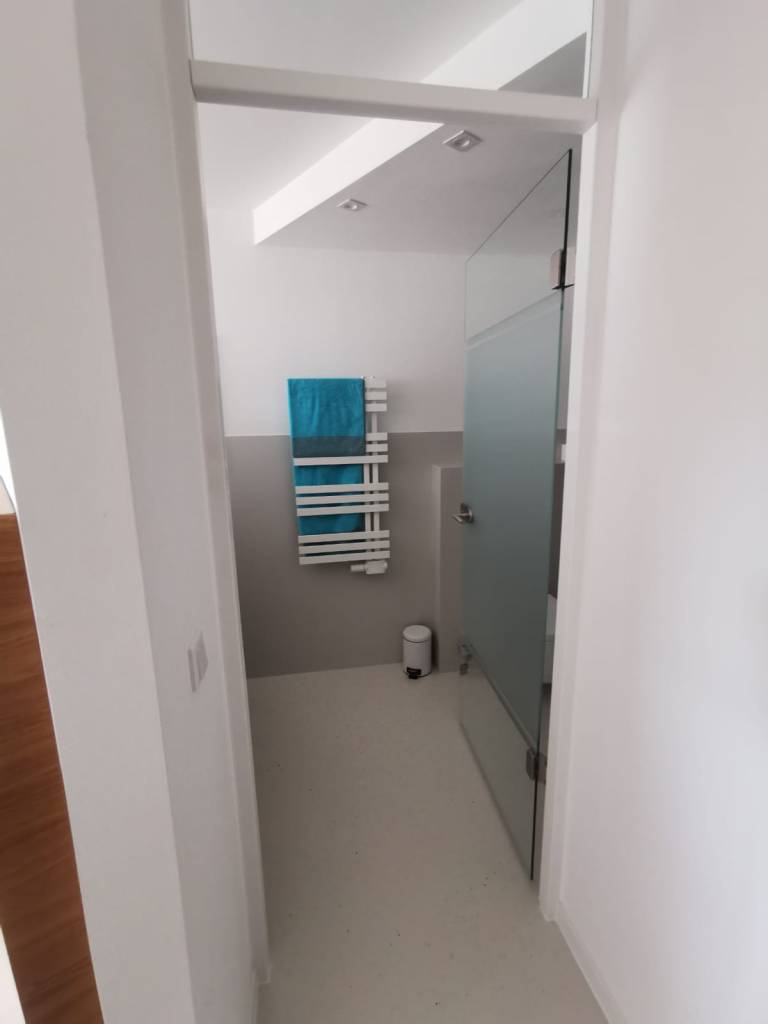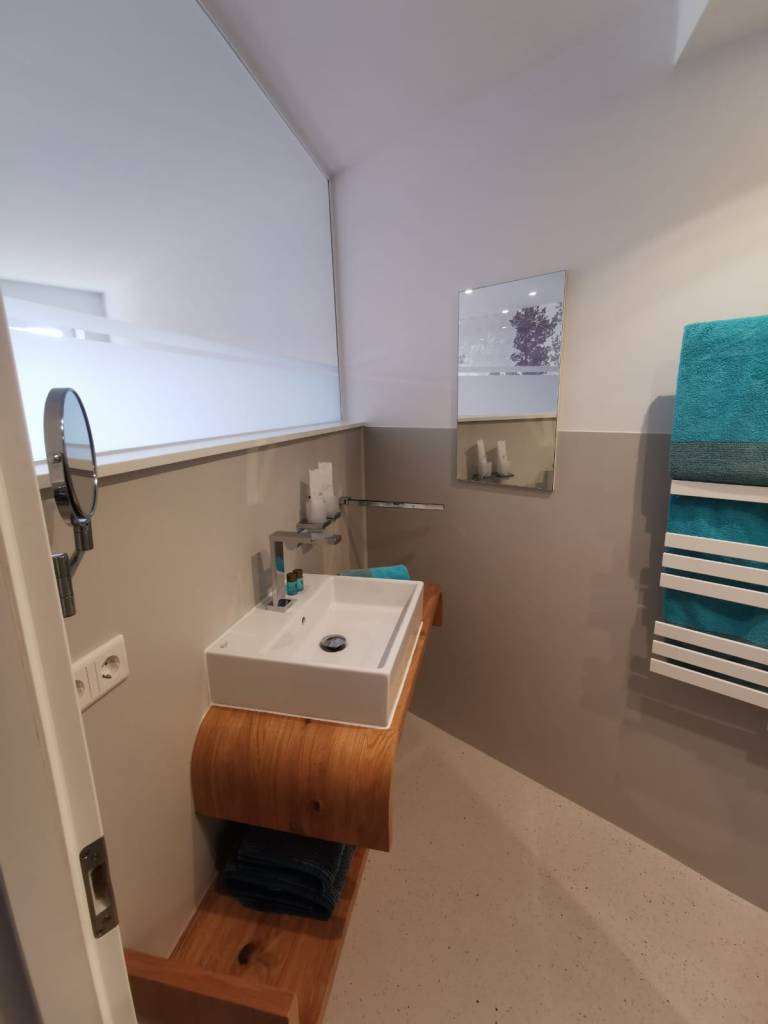 Für Rollstuhlfahrer ist die größte Wohnung die beste Wahl, da sie ausreichend Platz für eine einfache Wendung des Rollstuhls bietet. Zudem verfügt sie über eine barrierefreie Dusche, die Komfort und Sicherheit gewährleistet. Die oberen Wohnungen sind mit einem Aufzug erreichbar.