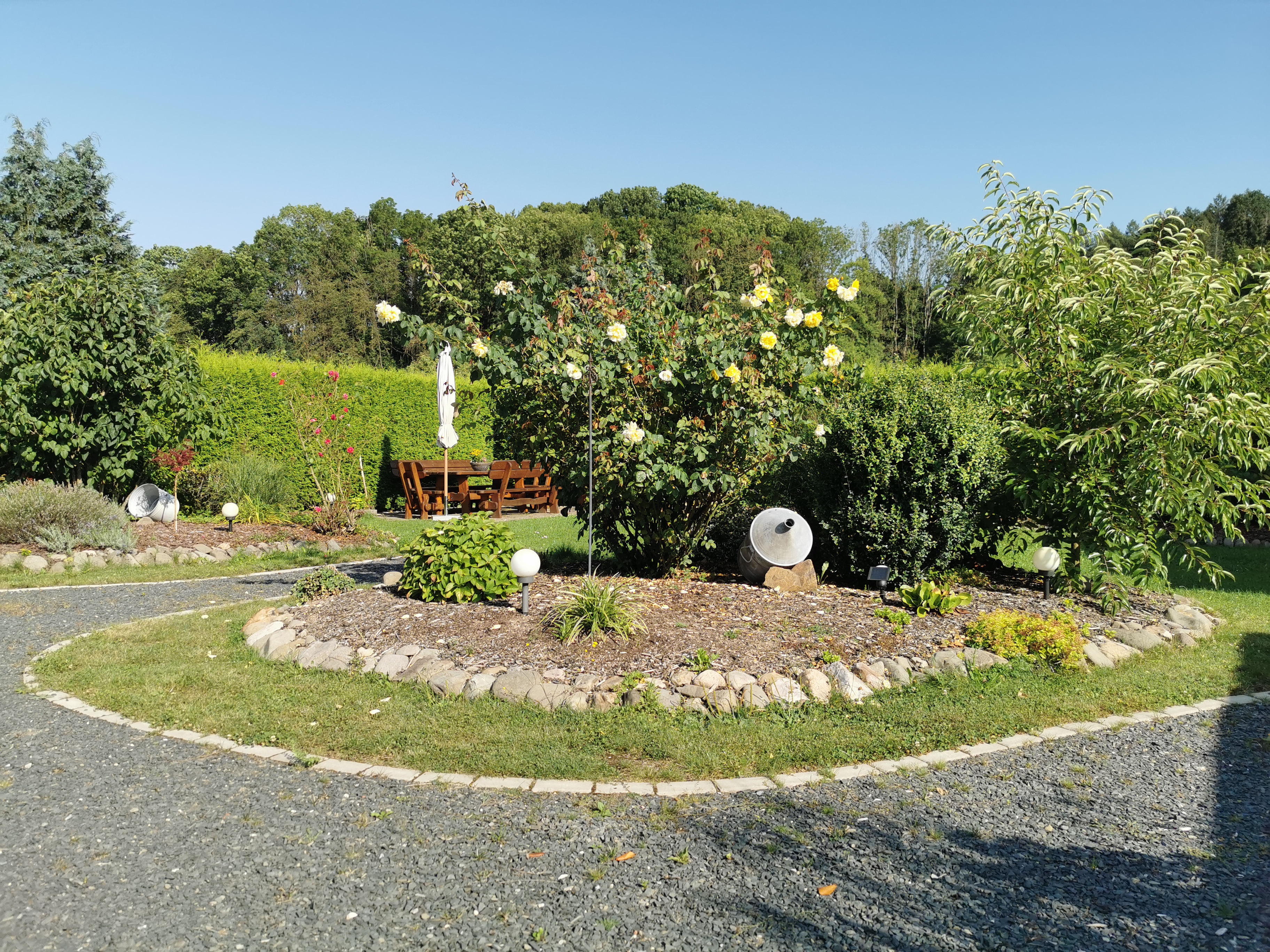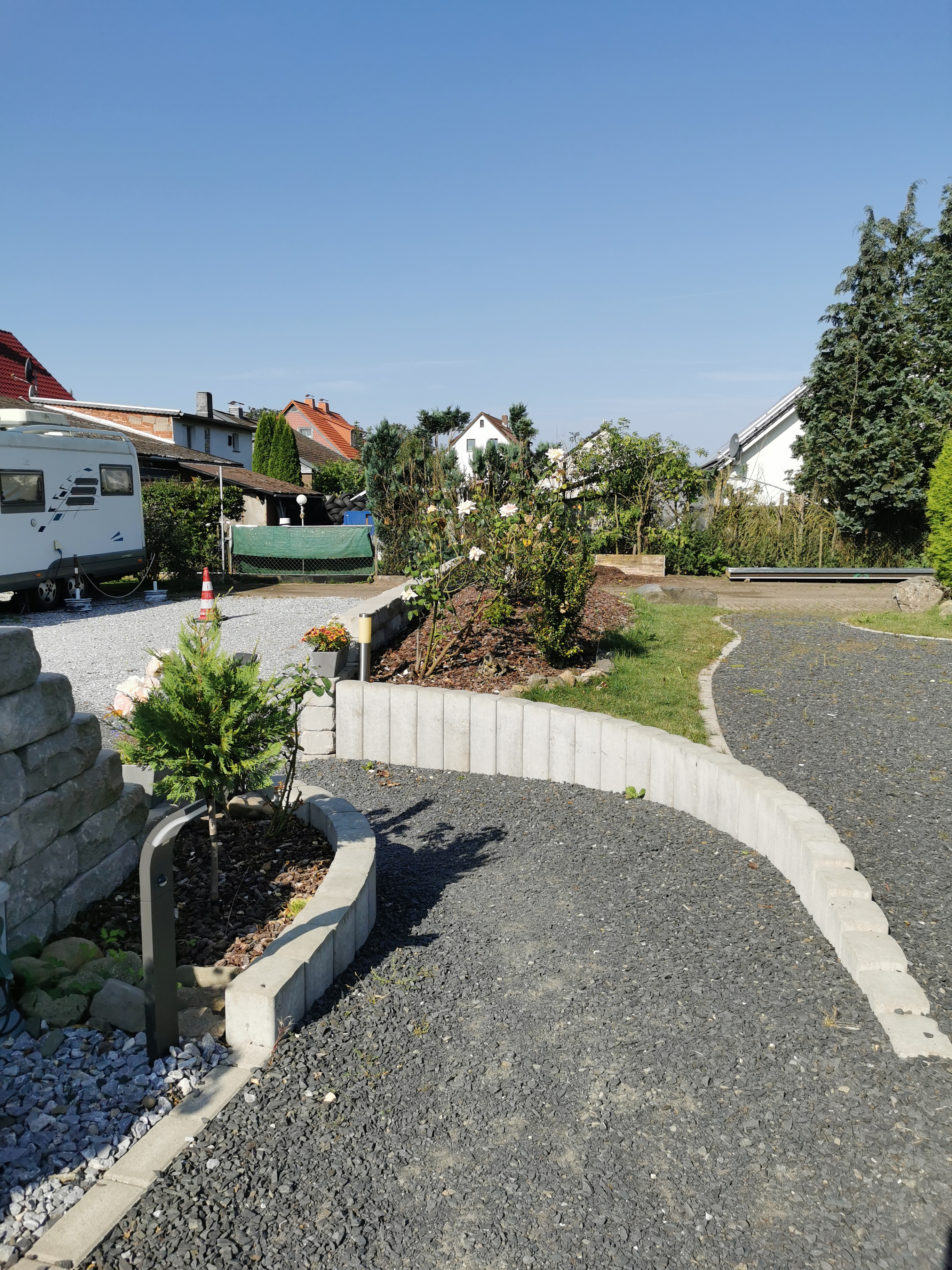Die Anlage verfügt über 12 gut sichtbar abgetrennte Stellplätze, die mit einem festen Kiesuntergrund ausgestattet sind – ideal für ein sicheres und stabiles Parken. Die freundliche Gastgeberin zeigte mir umgehend die gepflegten, rollstuhlgerechten Sanitäranlagen. Diese waren über einen barrierefreien, kiesbedeckten Pfad durch einen sehr schön angelegten Garten leicht vom Wohnmobil aus zu erreichen. Die sauberen Toiletten und Duschen waren ein wahrer Segen nach einem langen Tag auf der Straße.
