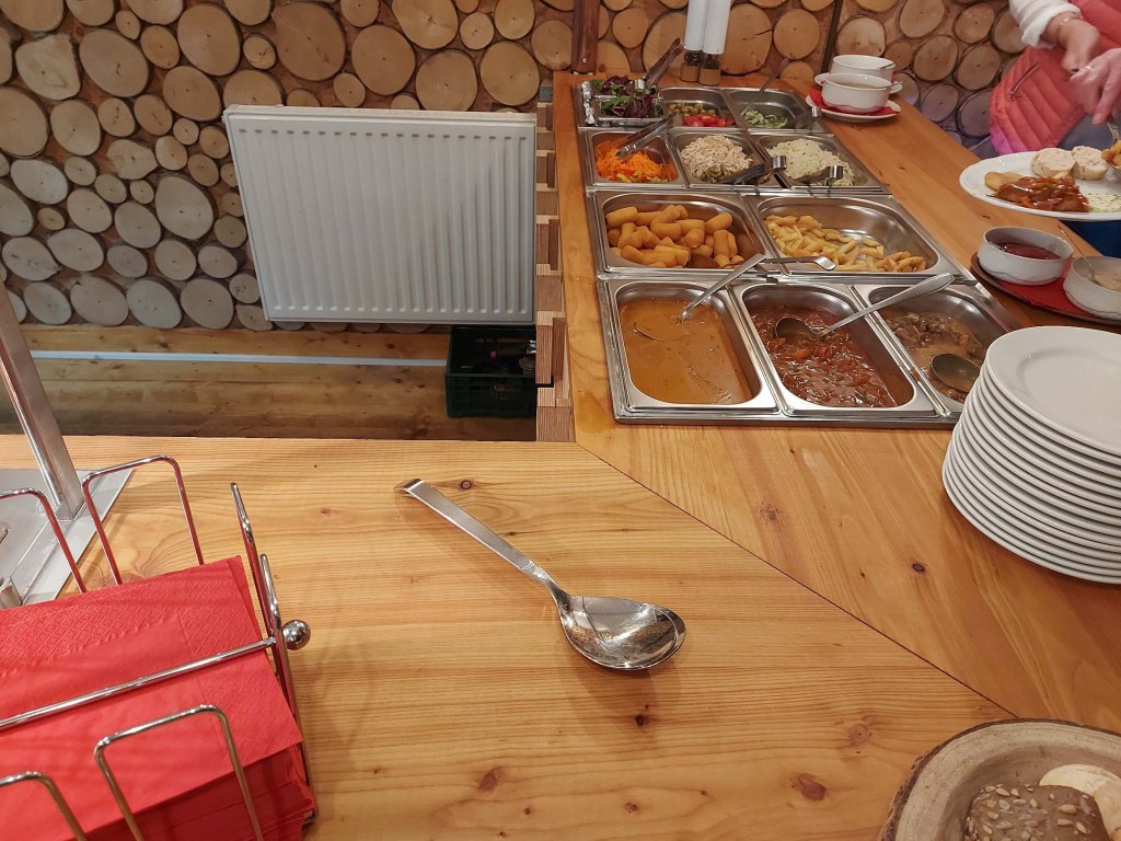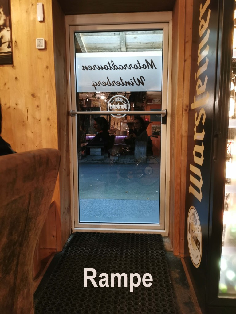 Der barrierefreie Eingang und eine kleine, aber effektive Rampe (ca. 5 cm) ermöglichen Rollstuhlfahrern oder Menschen mit Gehbehinderung einen bequemen Zugang zur Stube. Auch im vorderen Bereich ist genügend Platz, um sich komfortabel zu bewegen. Allerdings bleibt ein kleiner Wermutstropfen: Der zweite Gastraum ist leider nur über eine Stufe erreichbar, ebenso wie die Toiletten, die sich seitlich am Gebäude befinden.