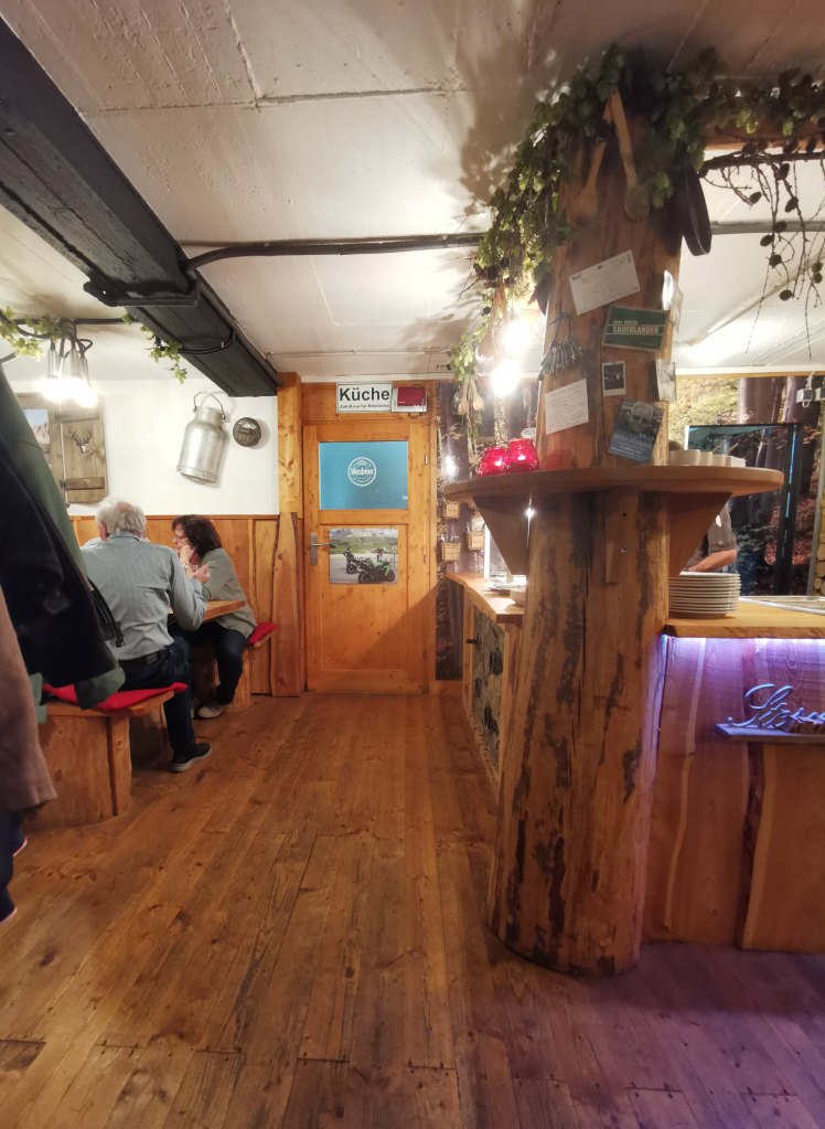 Mitten im malerischen Winterberg-Niedersfeld, umgeben von dichten Wäldern und idyllischen Motorradstrecken, liegt die Wasserradstube Niedersfeld – ein Ort, der mit urigem Charme, warmem Ambiente und herzlicher Gastfreundschaft besticht. Schon beim Betreten fühlt man sich in eine andere Welt versetzt: massive Holzbalken ragen bis zur Decke, rustikale Sitzbänke laden zum Verweilen ein, und liebevoll gestaltete Waldtapeten holen die Natur direkt ins Innere der Stube. Das leise Knistern des Kamins und die gemütliche Theke runden das behagliche Flair ab.