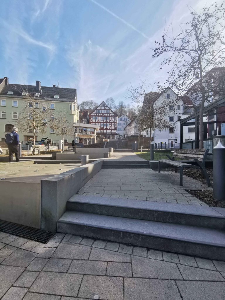 Frankenberg begrüßt Besucher mit historischen Gebäuden und einer malerischen Altstadt, die sich hervorragend für einen gemütlichen Spaziergang eignet – zumindest, wenn man keine großen Mobilitätseinschränkungen hat. Einige Bereiche der Stadt sind gut durchdacht und bieten eine barrierearme Erkundung. Ein Beispiel dafür ist der Weg vom Fluss Eder entlang der Uferstraße bis hinauf zum Wasserpark Illerplatz. Die Serpentinen sind wunderbar ohne Barrieren gestaltet, sodass ich problemlos mit meinem Rollstuhl den Hang hinauffahren konnte. Für diejenigen, die es bevorzugen, Stufen zu gehen, wurden diese parallel integriert. Ein toller Kompromiss, der sowohl barrierefreie als auch traditionelle Wege miteinander vereint.