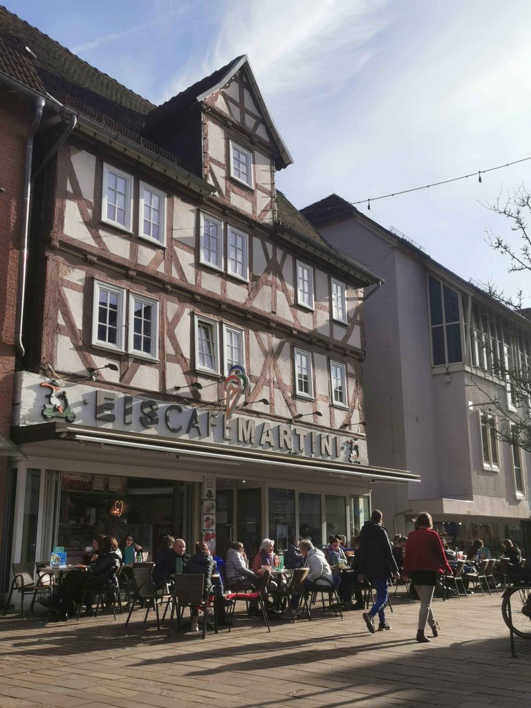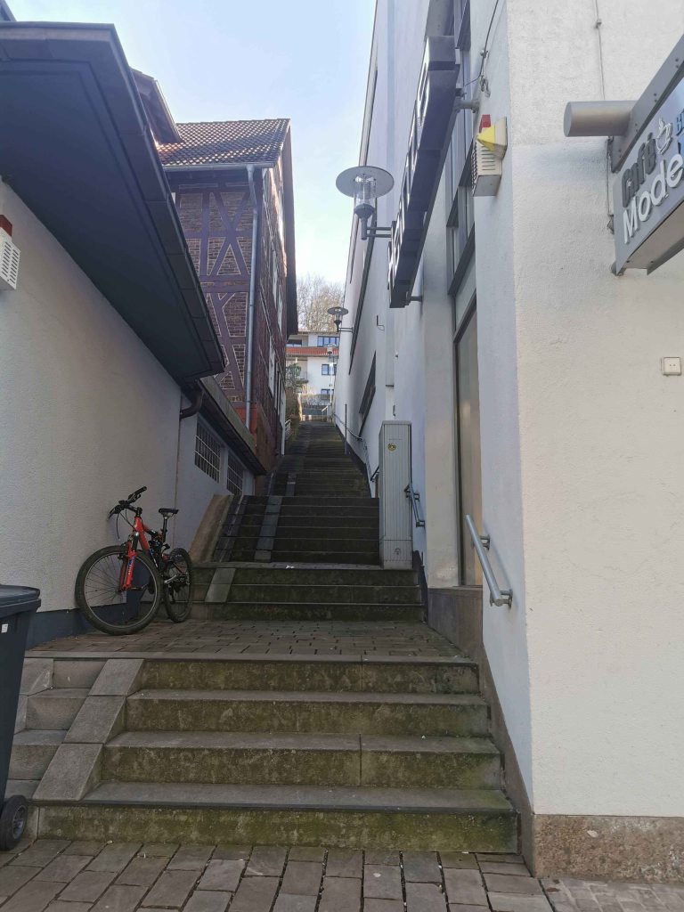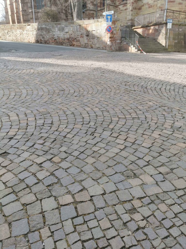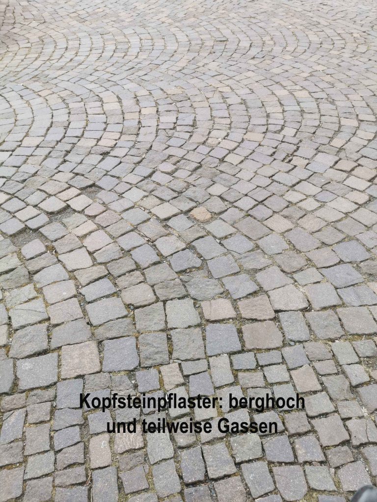In der Altstadt, besonders auf der Nemphe und der Neustädter Straße, lässt es sich relativ gut mit dem Rollstuhl fortbewegen. Der Untergrund ist größtenteils eben, mit quadratischen Kopfsteinpflasterflächen, die die Mobilität erleichtern. Für Menschen mit Rollatoren oder stärkeren Gehbehinderungen ist dieser Bereich angenehm befahrbar. Der weitere Weg zur Ritterstraße führte mich jedoch in eine schwierigere Zone: Die Steingasse, die steil bergauf geht und mit unregelmäßigem Kopfsteinpflaster versehen ist, stellte für meinen Rollstuhl – auch mit dem efix – eine echte Herausforderung dar. An dieser Stelle hätte ich mir eine besser ausgebaute Strecke gewünscht, die auch mit schwereren Rollstühlen problemlos befahrbar wäre.