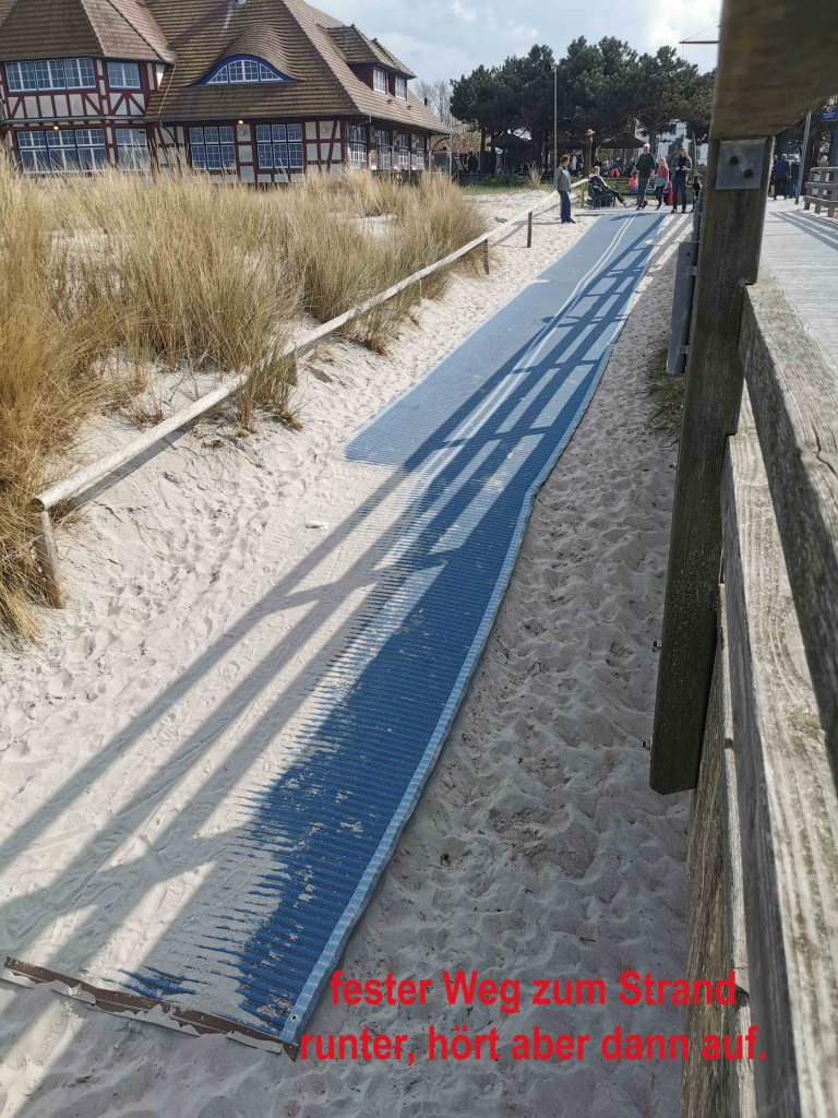 Hier wünsche ich mir dringend eine Erweiterung: Eine durchgehende, barrierefreie Verbindung zu den Strandkörben – ähnlich, wie ich es in Kühlungsborn erlebt habe, wo ein perfekter Zugang geschaffen wurde.