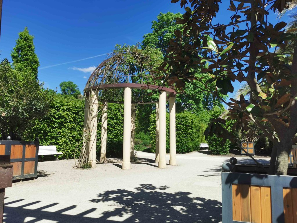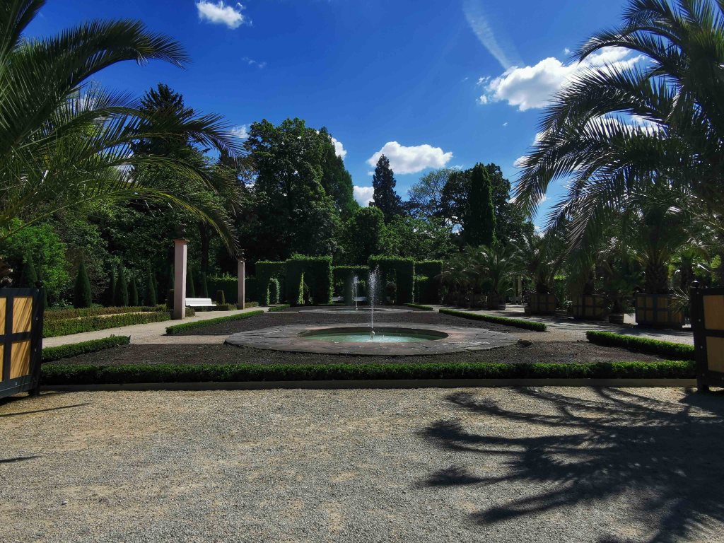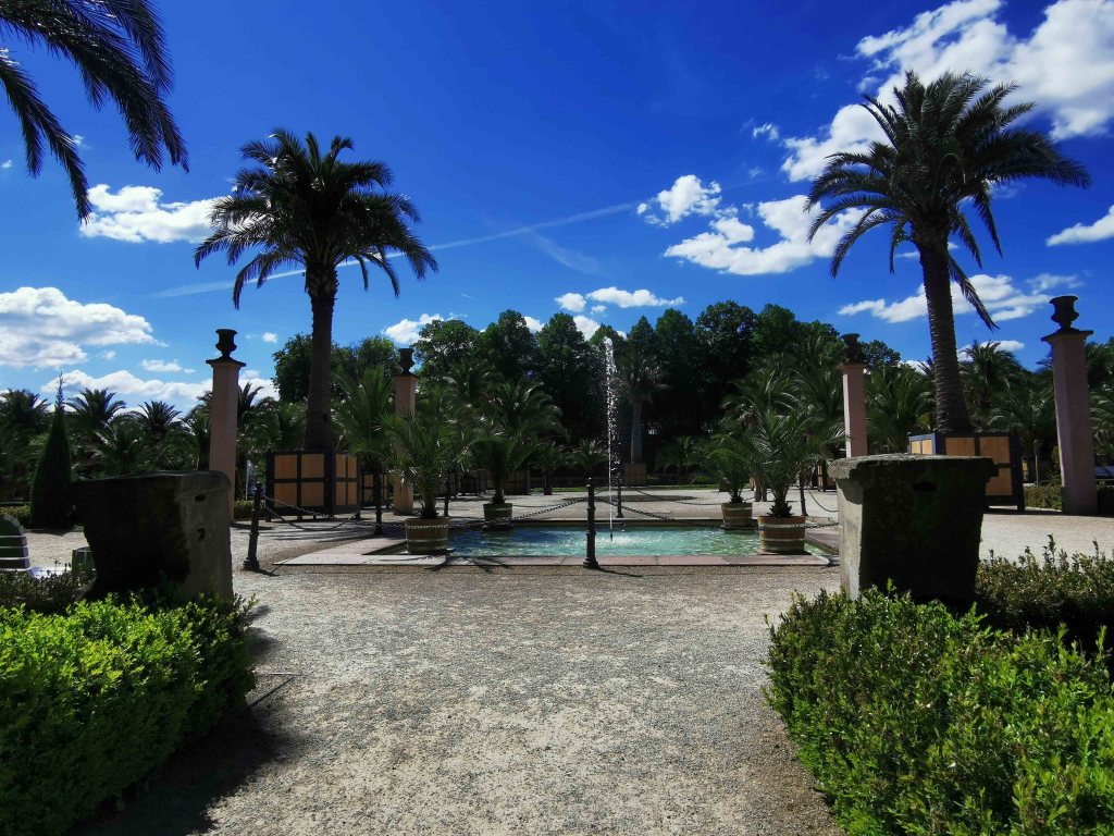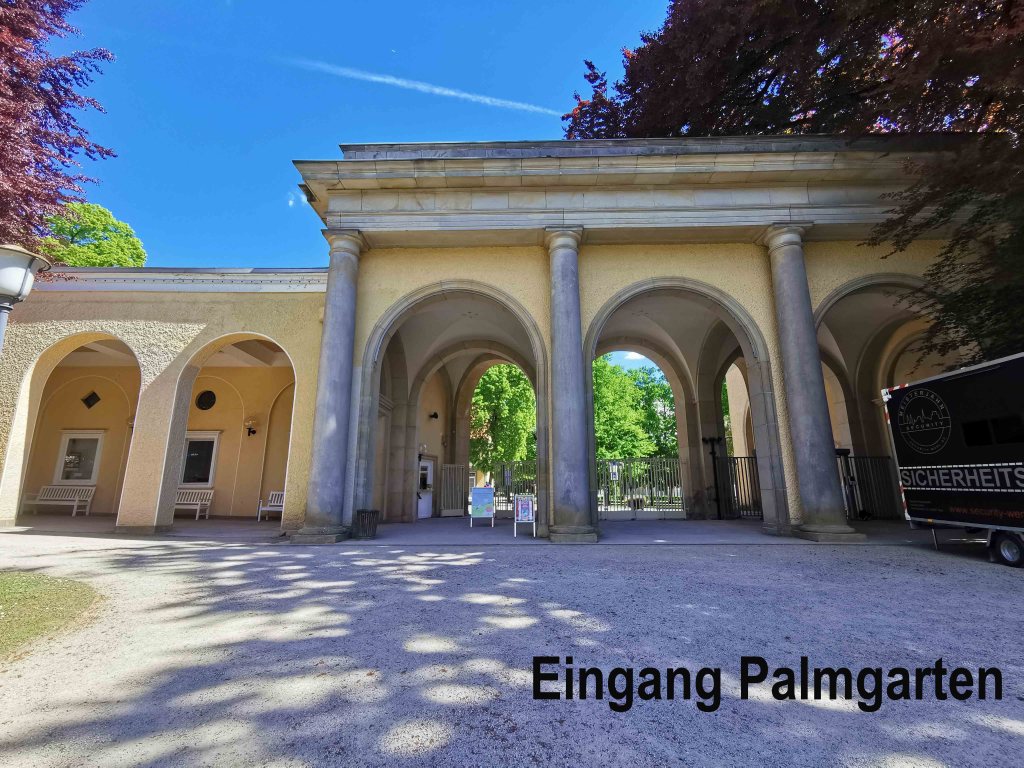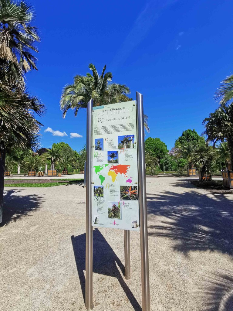 Der Palmengarten im Kurpark Bad Pyrmont war mein Ziel an einem sonnigen Tag – und ich wurde nicht enttäuscht. Geparkt habe ich direkt auf einem der Behindertenparkplätze am Schlossplatz. Von dort musste ich nur die Straße überqueren und bin dann mit dem Rollstuhl auf dem Bürgersteig gemütlich bis zum Haupteingang des Kurparks an der Heiligenangerstraße 9–11 gerollt – dem sogenannten Brandenburger Tor.