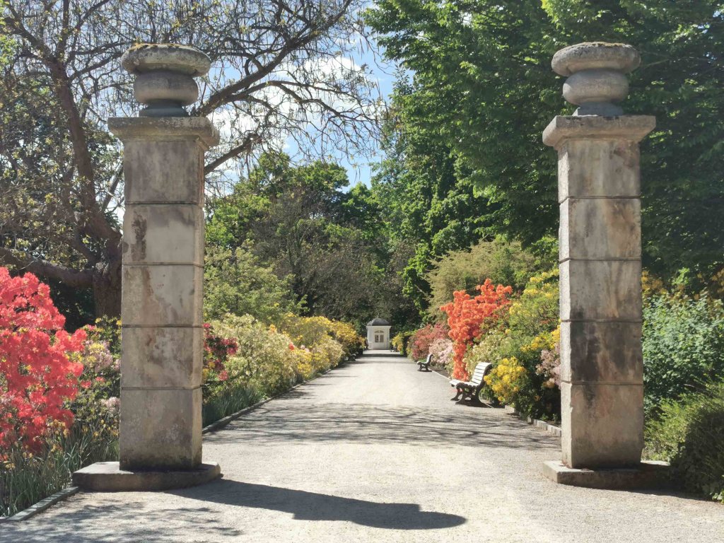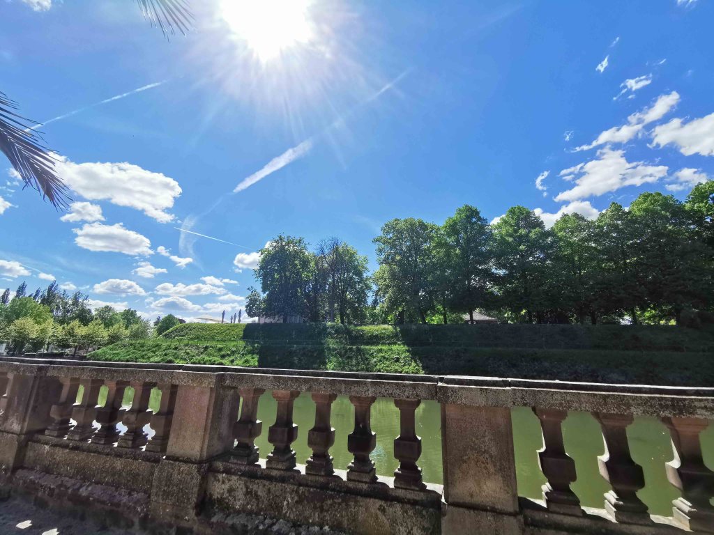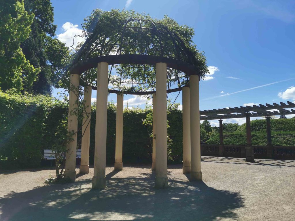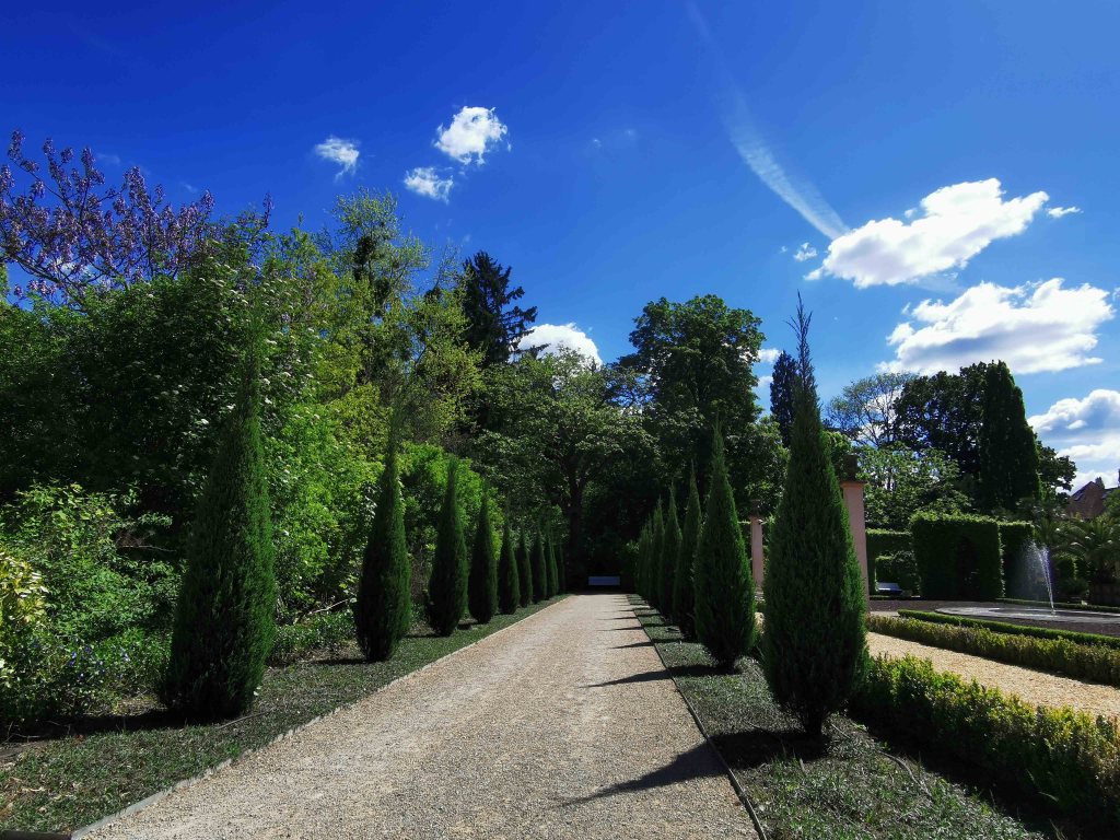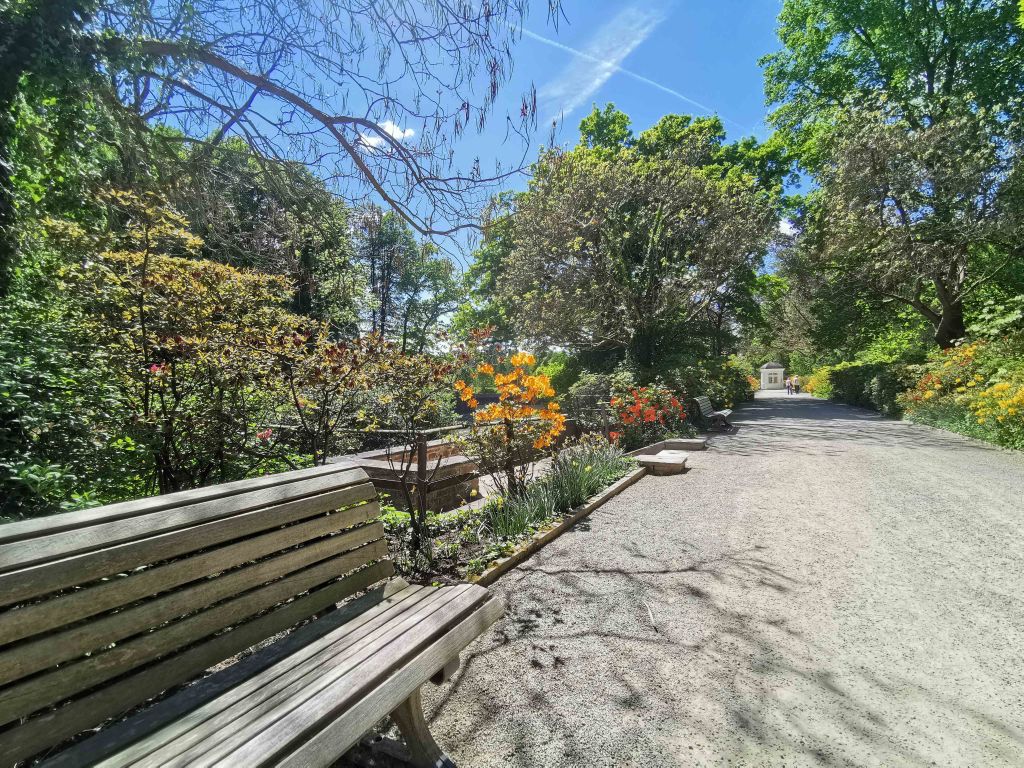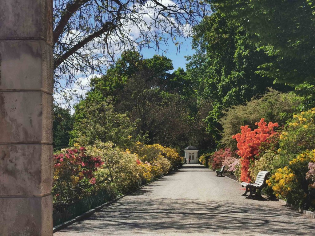 Der Palmengarten im Kurpark Bad Pyrmont war mein Ziel an einem sonnigen Tag – und ich wurde nicht enttäuscht. Geparkt habe ich direkt auf einem der Behindertenparkplätze am Schlossplatz. Von dort musste ich nur die Straße überqueren und bin dann mit dem Rollstuhl auf dem Bürgersteig gemütlich bis zum Haupteingang des Kurparks an der Heiligenangerstraße 9–11 gerollt – dem sogenannten Brandenburger Tor.