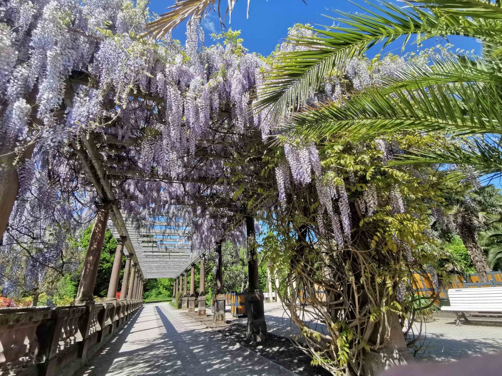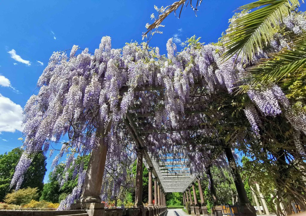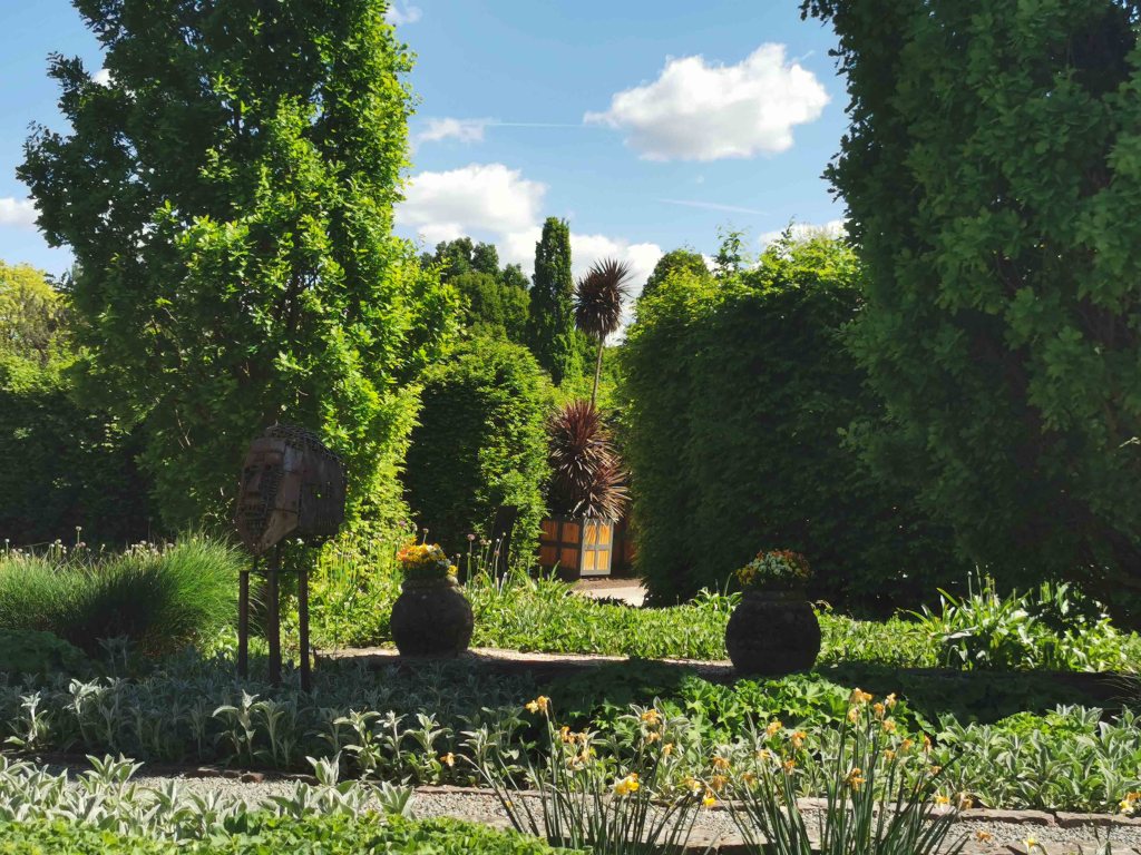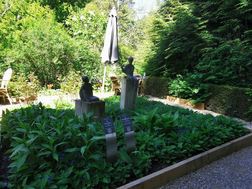 Der Palmengarten selbst ist eine grüne Oase mit Palmen, duftenden Blüten, alten Bäumen und schattigen Alleen. Überall finden sich Sitzbänke, sogar in kleinen „Höhlen“, Themenbereiche laden zum Entdecken ein, und Skulpturen machen den Spaziergang auch kulturell spannend. Besonders gut gefallen hat mir der Barfußpfad – auch wenn ich ihn als Rollstuhlfahrerin natürlich nicht selbst nutzen konnte, fand ich ihn eine tolle Idee für Besucher, die barfuß gehen möchten.