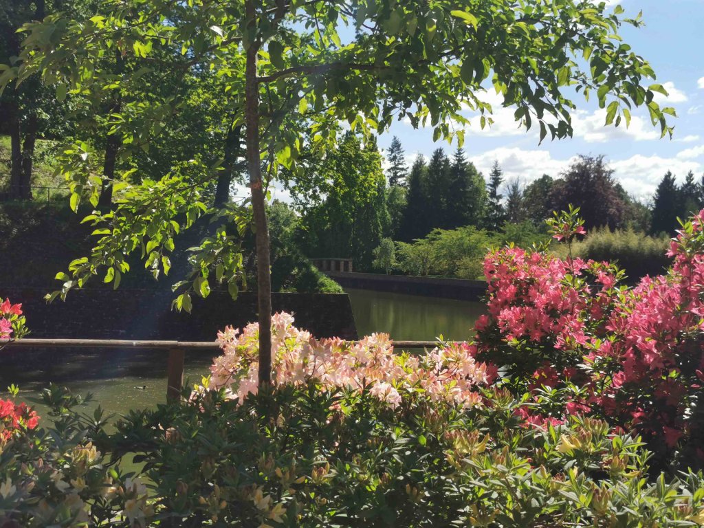 Der Blick vom Palmengarten zur Schlossinsel – einfach traumhaft! Wir haben zwischendurch im Teehaus einen sehr guten Tee getrunken, später noch ein Bierchen genossen. Das gehört für mich zum Kurparkerlebnis genauso dazu wie das bewusste Entschleunigen.