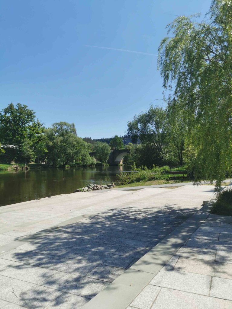 Von der Brücke führte mein Weg weiter über die Brückenstraße, vorbei an urigen Plätzen, alten Toren und gemütlichen Cafés. Besonders ins Auge fiel mir das prächtige Rathaus, das zwischen 1562 und 1568 im Stil der Spätrenaissance nach einem Brand neu errichtet wurde – rot gestrichen, stolz und wunderschön restauriert. Für mich als Architektur-Fan ein absolutes Highlight!