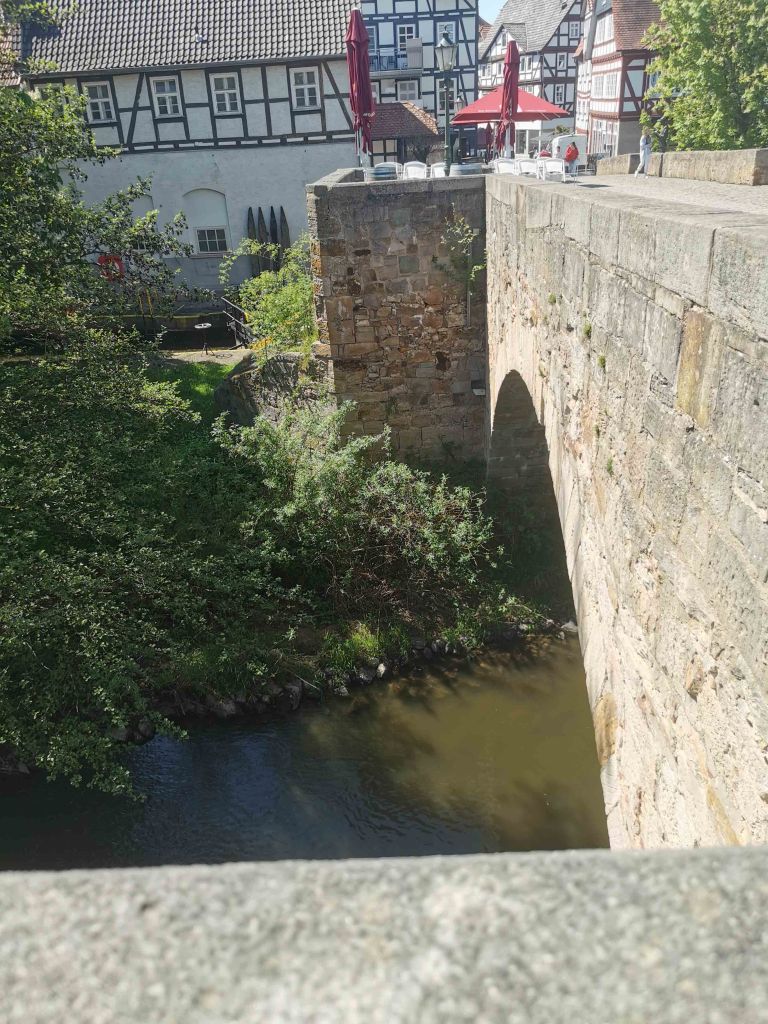 Melsungen stand schon lange auf meiner Liste der historischen Altstädte, die ich als Rollstuhlfahrerin erleben wollte – mit all ihrem Charme, Fachwerk, Geschichte… und Kopfsteinpflaster. Ich parkte an der Sandstraße, ganz in der Nähe zur Fulda – hier beginnt das historische Herz der Stadt.