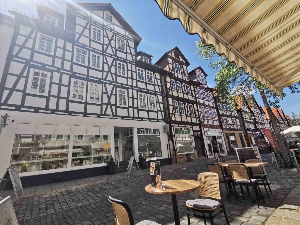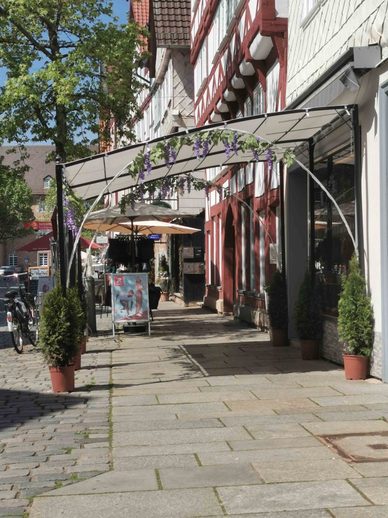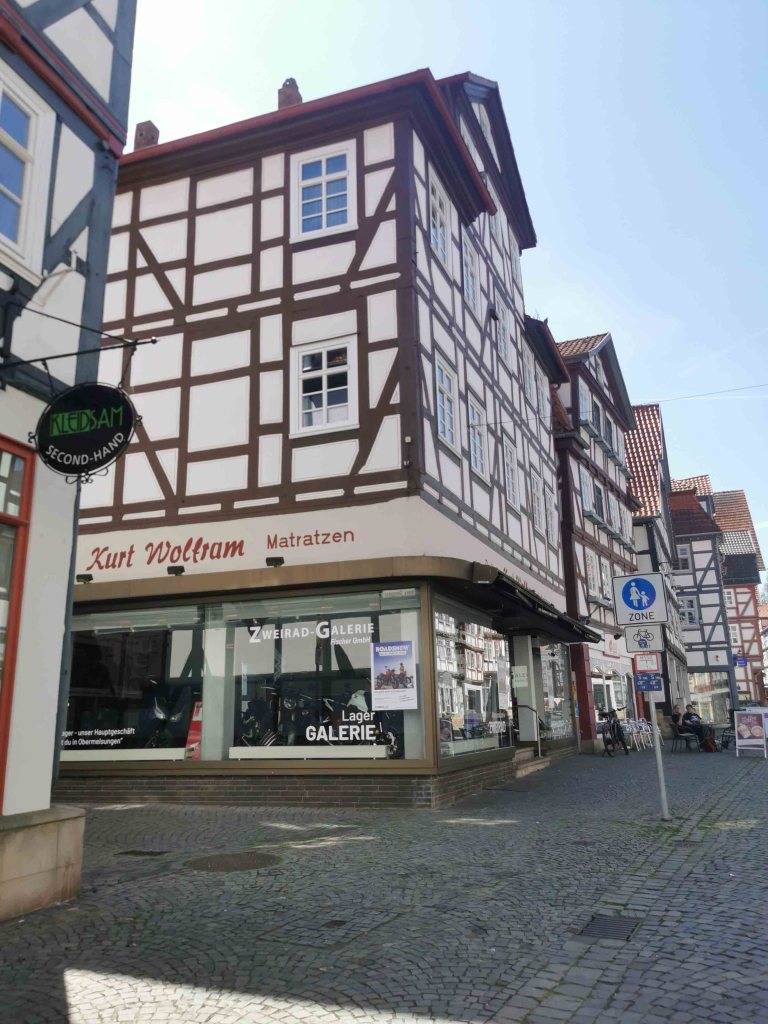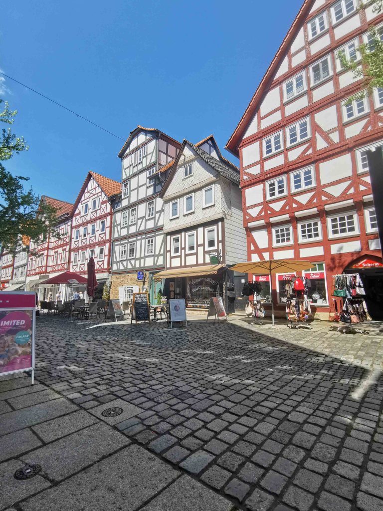 Die gesamte Altstadt ist ein wahres Fachwerkmuseum unter freiem Himmel: bunt, charmant, historisch – aber für Menschen mit Handicap nicht ohne Herausforderungen. Das Kopfsteinpflaster ist allgegenwärtig. Selbst mit E-Antrieb blieb ich öfter hängen und war froh, dass meine Begleitung unterstützend eingreifen konnte.