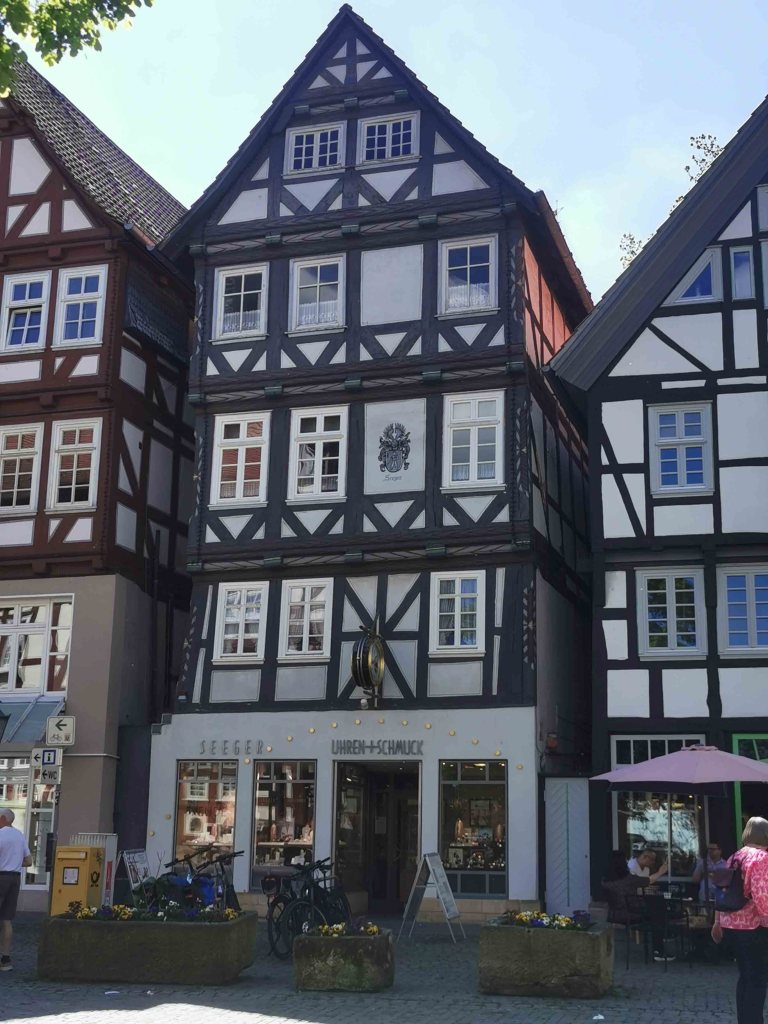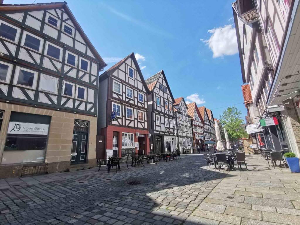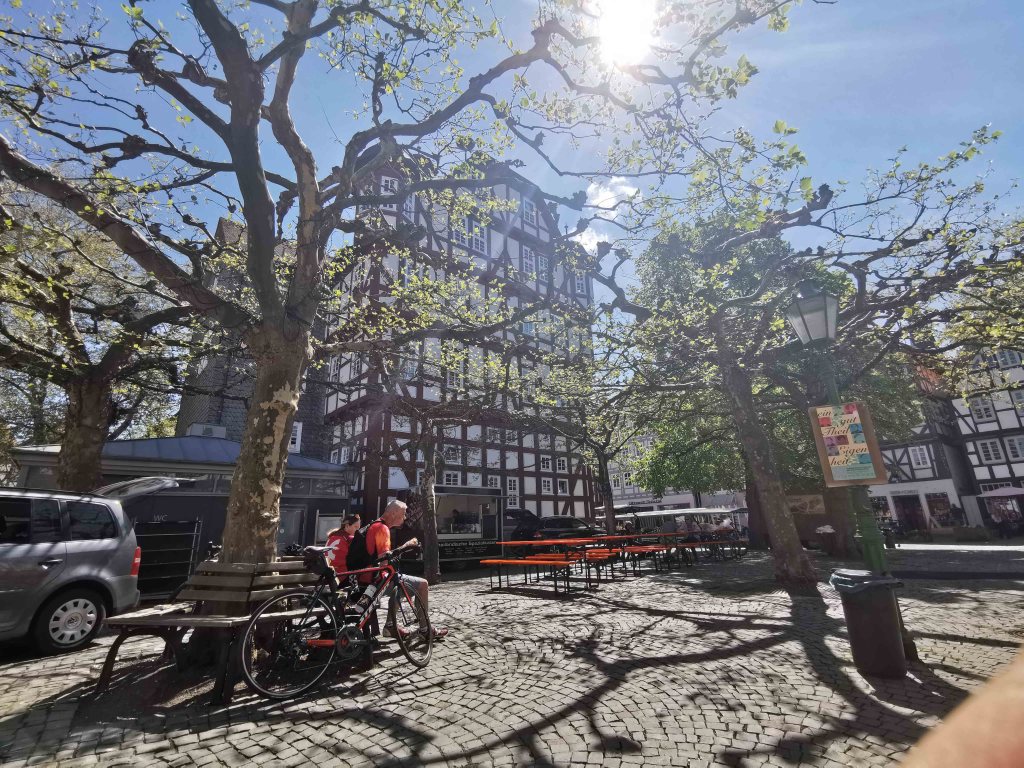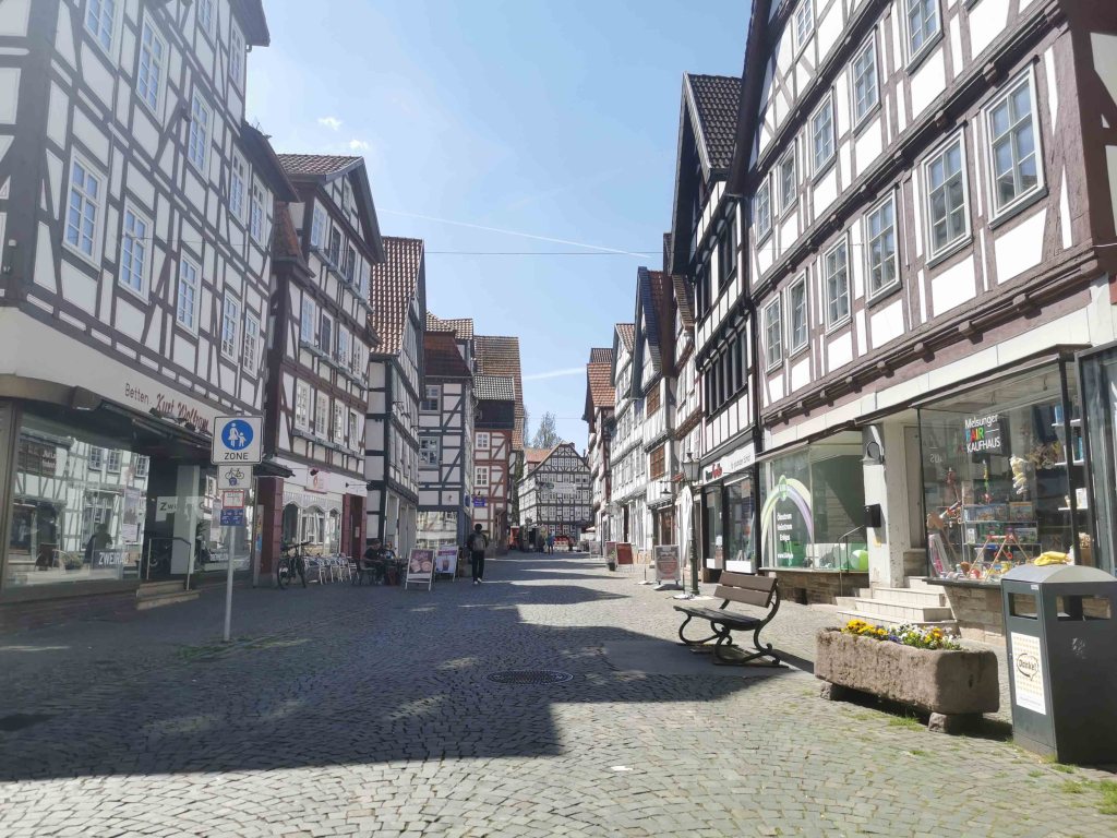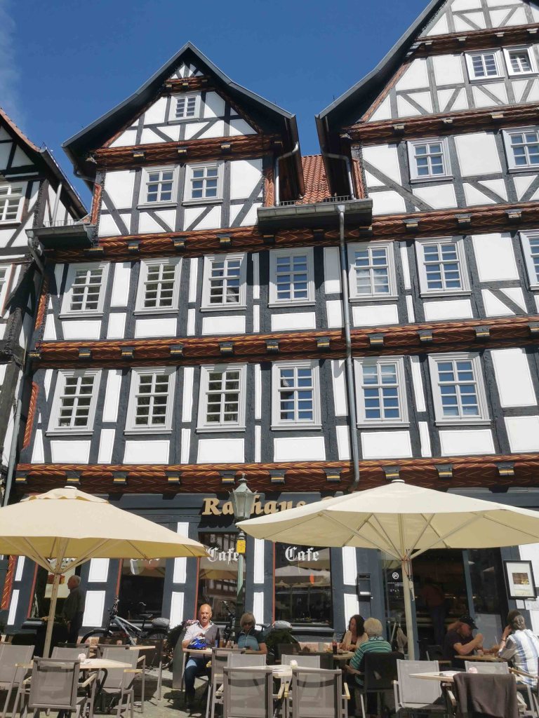 Die gesamte Altstadt ist ein wahres Fachwerkmuseum unter freiem Himmel: bunt, charmant, historisch – aber für Menschen mit Handicap nicht ohne Herausforderungen. Das Kopfsteinpflaster ist allgegenwärtig. Selbst mit E-Antrieb blieb ich öfter hängen und war froh, dass meine Begleitung unterstützend eingreifen konnte.