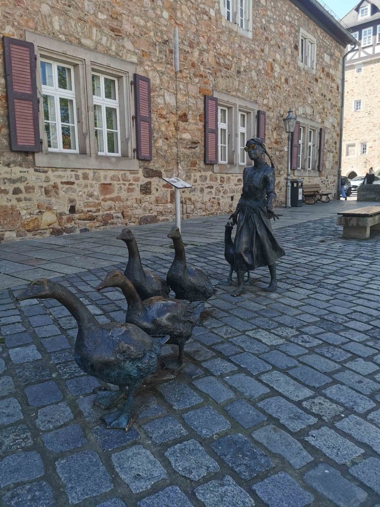 An der Kasseler Straße trifft man auf die liebevoll gestaltete Figur der „Gänseliesl“, die an das Grimm’sche Märchen erinnert. Ein schönes Fotomotiv – aber Achtung: Der Weg dorthin ist wieder gepflastert und teilweise schräg. Entlang der Straßen laden Cafés und Restaurants zum Verweilen ein. Viele davon haben Außengastronomie auf flachen Zonen, was für Rollstuhlfahrende angenehm ist – aber Innenräume sind nicht immer zugänglich, also vorher unbedingt prüfen.