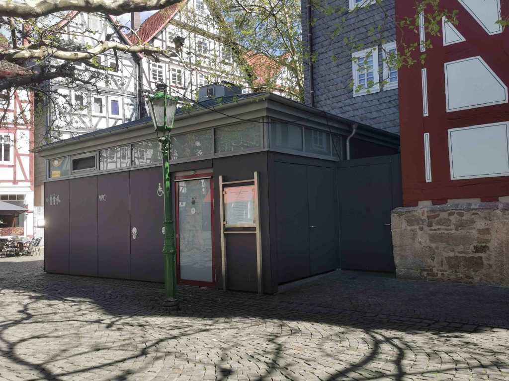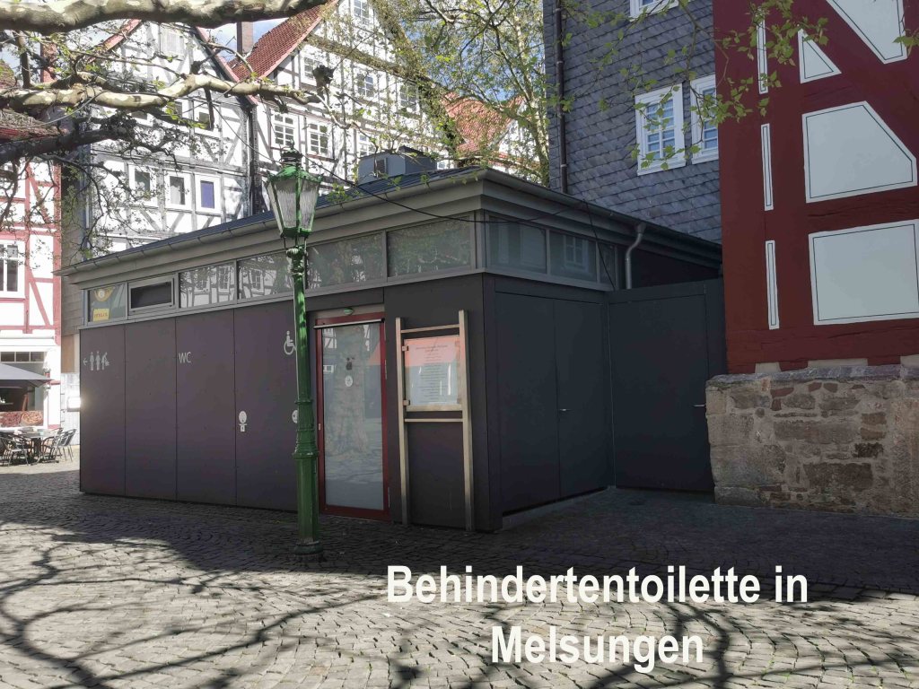 Wer länger unterwegs ist, freut sich über folgende Info: Hinter dem Rathaus (Am Markt 1) gibt es eine barrierefreie Toilette, die mit dem Euroschlüssel geöffnet werden kann – sauber, großzügig, funktional. Punkt für Melsungen!