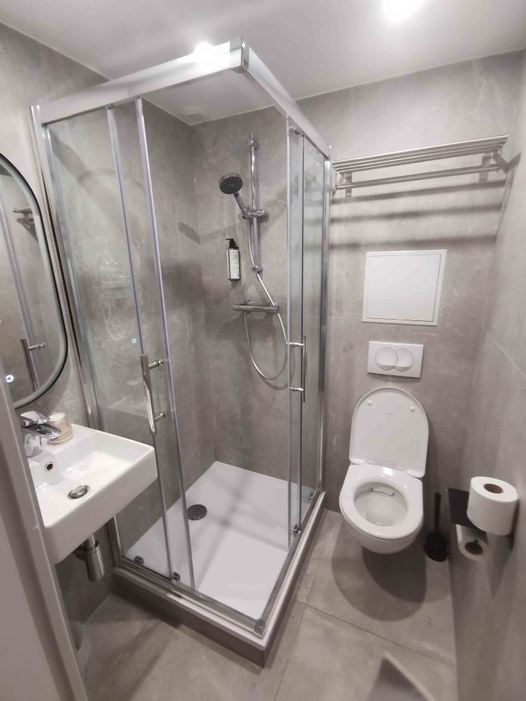Das Zimmer selbst war sehr klein. Für Gepäck blieb kaum Platz, das Badezimmer war eng und sicher nicht rollstuhlgerecht. Da ich einige Schritte laufen kann, wurde mein Rollstuhl kurzerhand ins Auto gebracht. Für eine Nacht war es machbar, für einen längeren Aufenthalt wäre es für mich jedoch ungeeignet.
