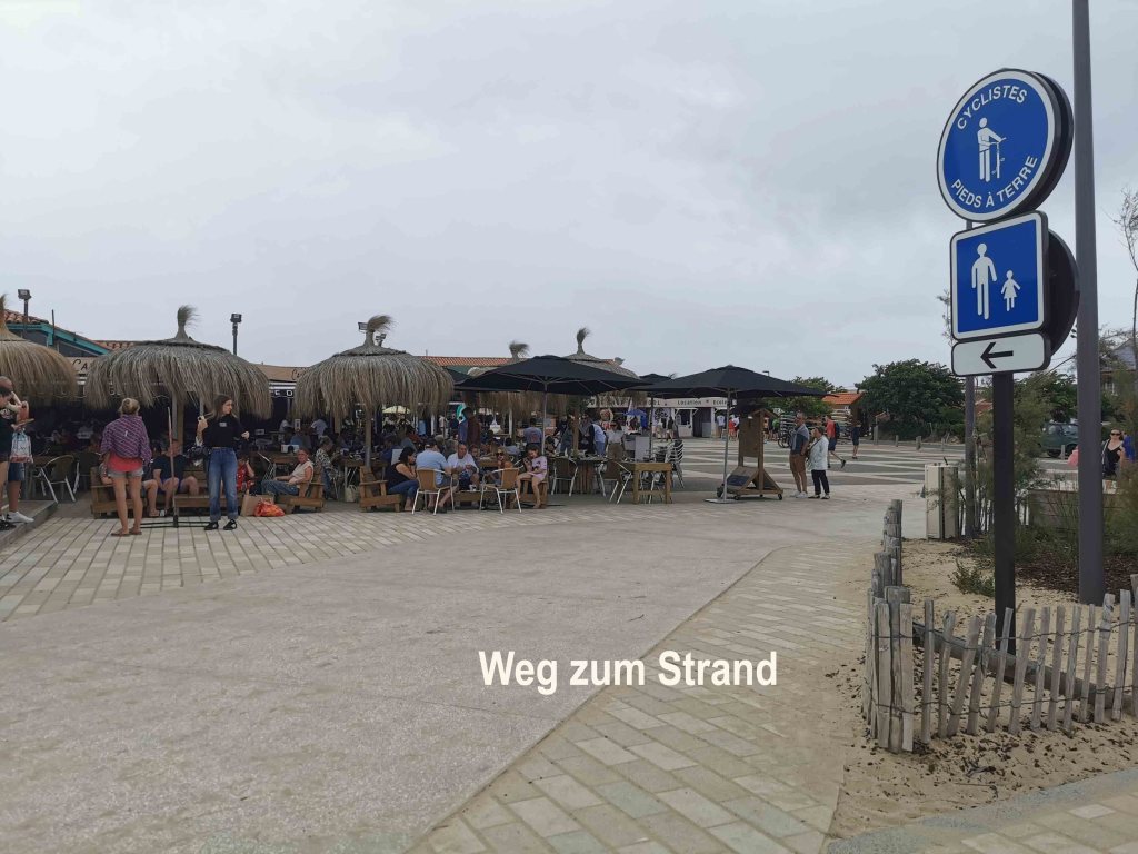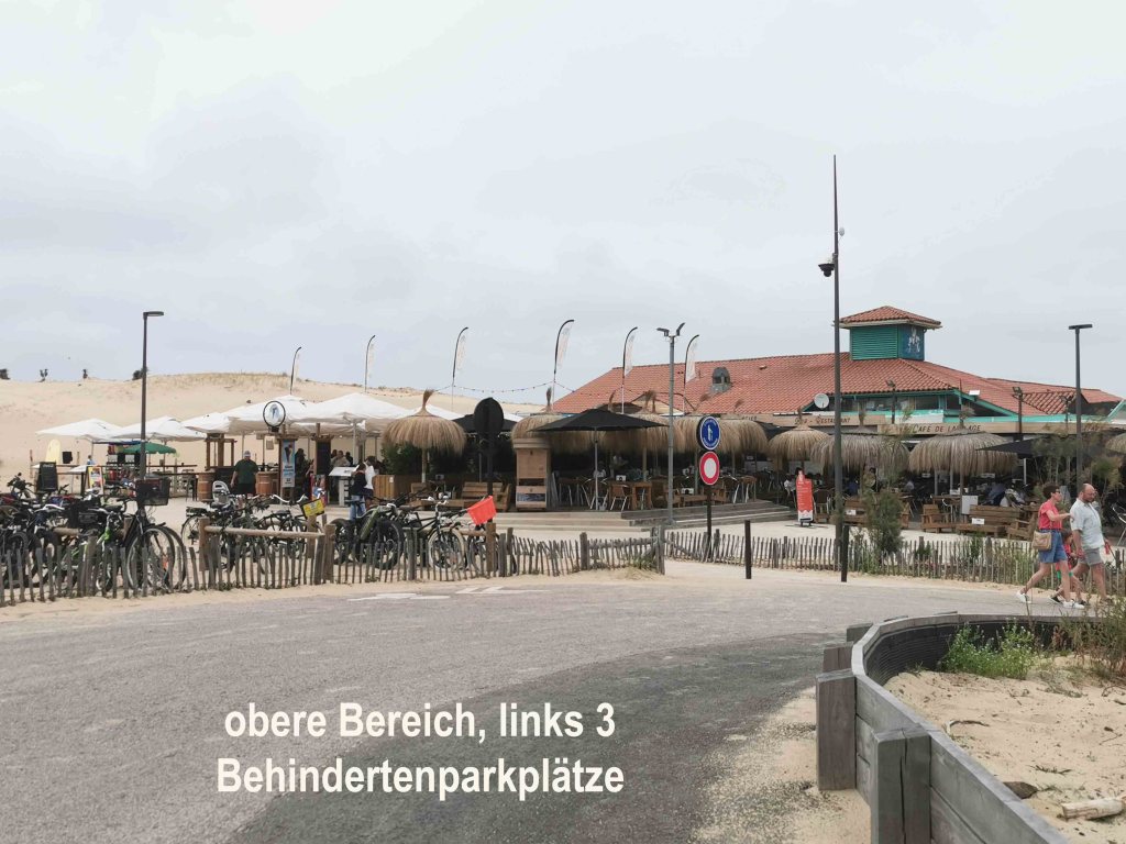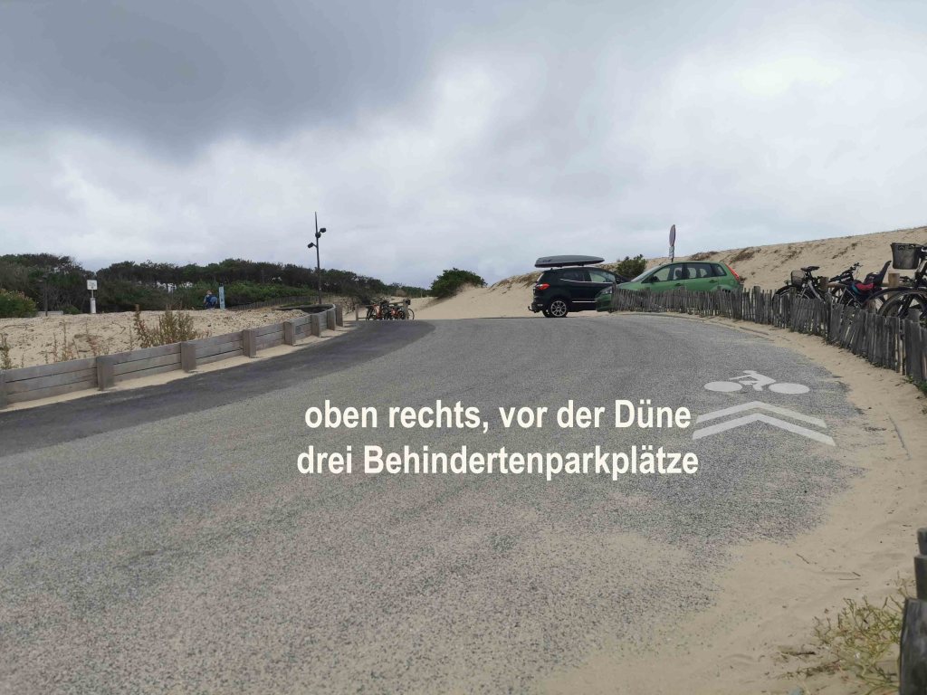 Schon die Anfahrt ist praktisch: Über die Avenue de l’Océan gelangt man direkt nach oben, wo drei Behindertenparkplätze zur Verfügung stehen. Von dort führt ein asphaltierter Weg bis zum Strand, danach folgt eine sehr lange, stabile Matte, die ausgelegt ist. So ist der Zugang für Rollstühle erleichtert.