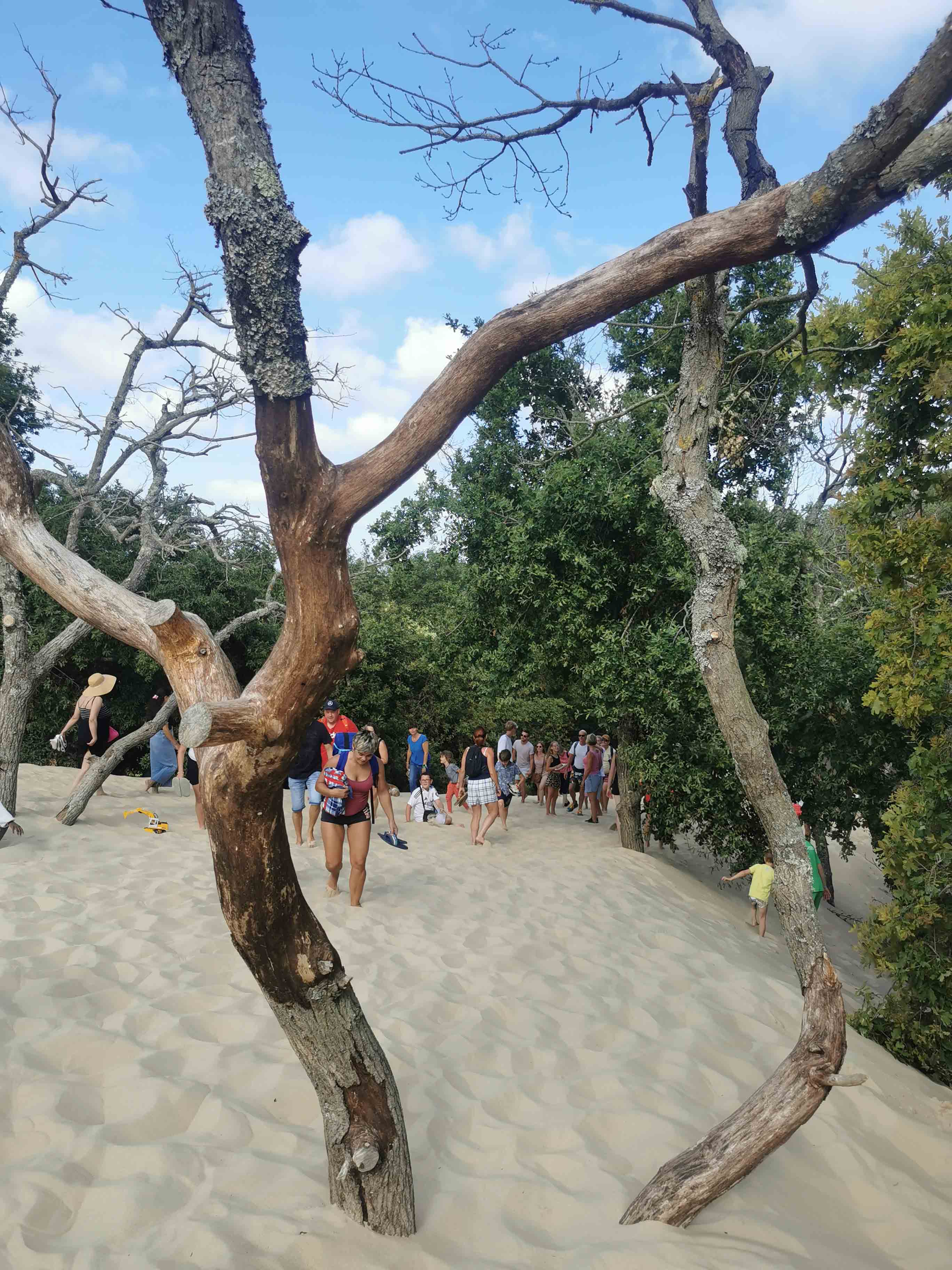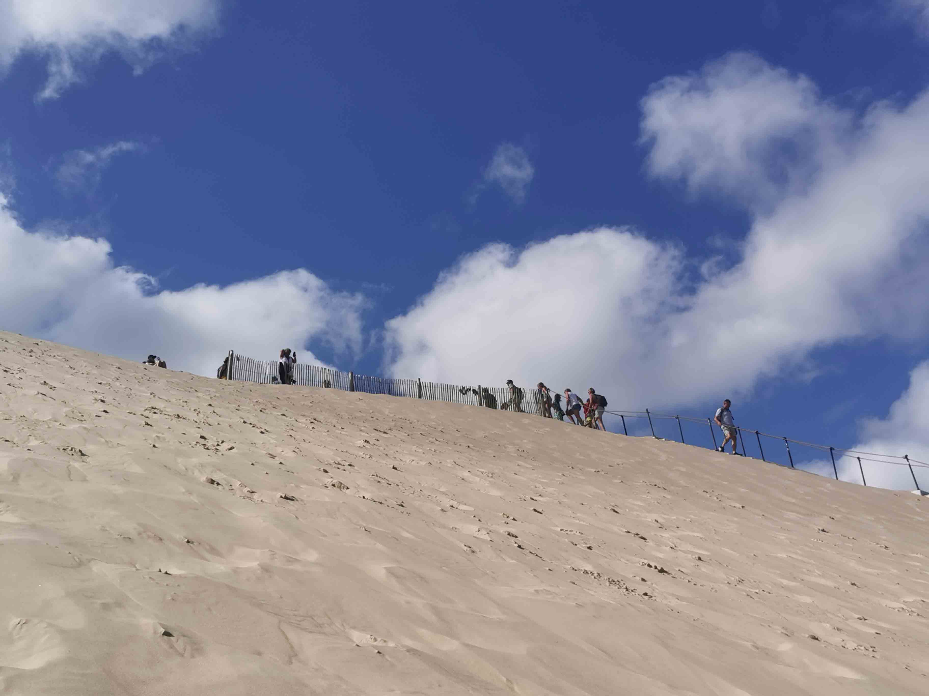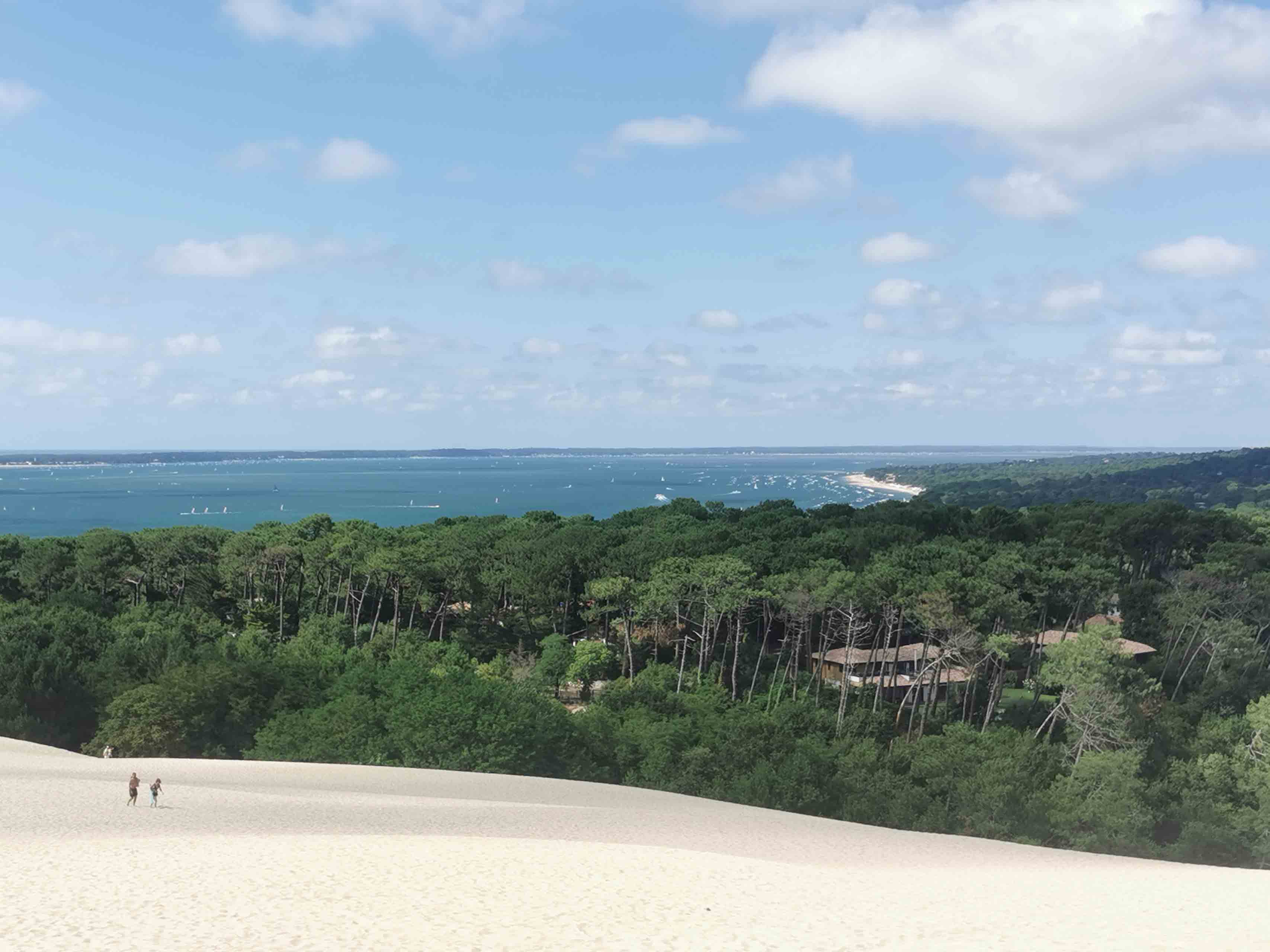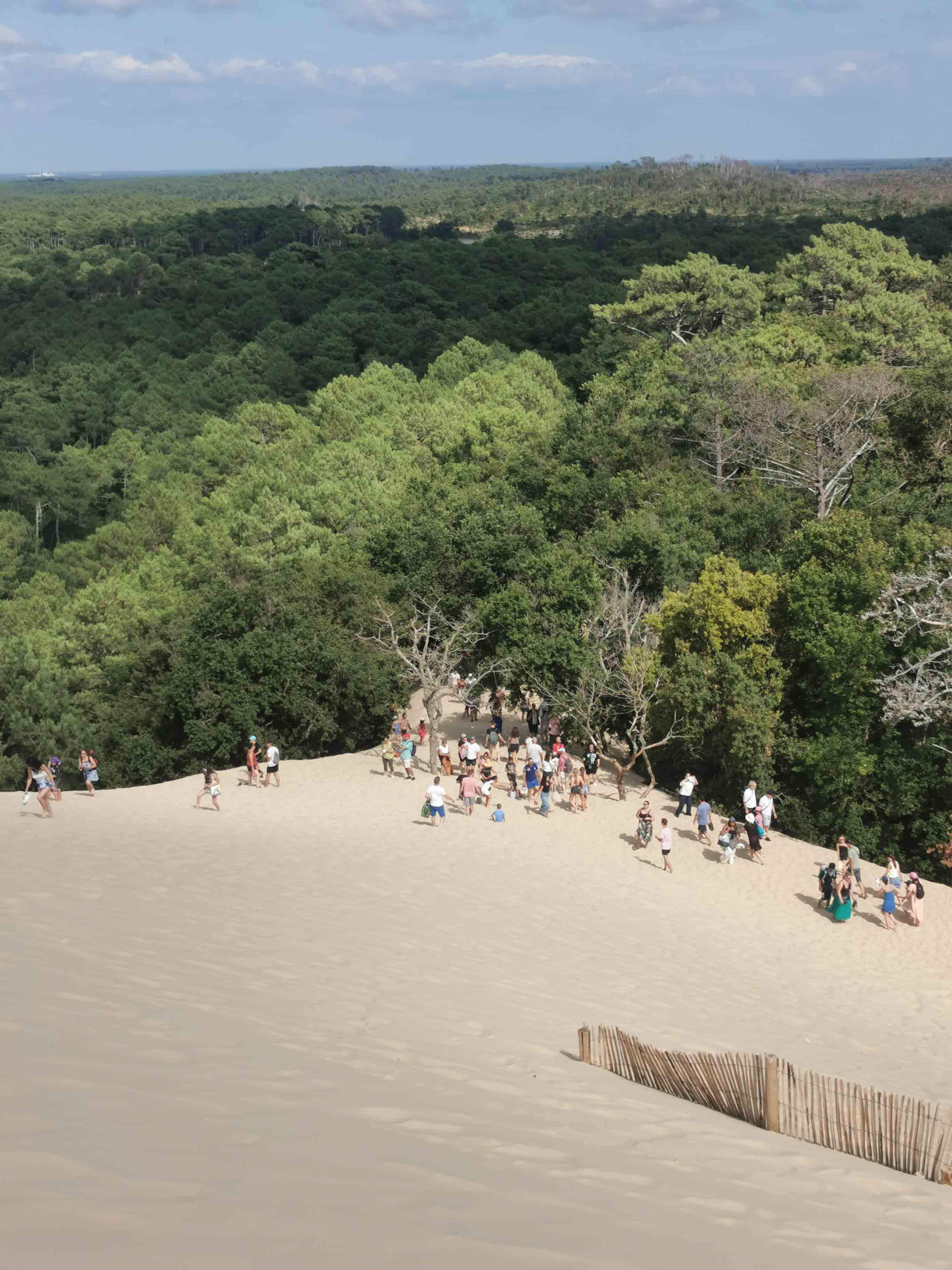 Von Mimizan aus führte uns unsere Reise weiter nach Arcachon. Während am Atlantik noch blauer Himmel und Sonne herrschten, zogen im Landesinneren immer mehr Wolken auf. Die Landschaft veränderte sich – und plötzlich, wie eine Fata Morgana, tauchte zwischen den Kiefern etwas auf, das eher an eine Wüste oder an Pyramiden erinnerte: gewaltige Sandberge, die sich über den Wald erhoben.
