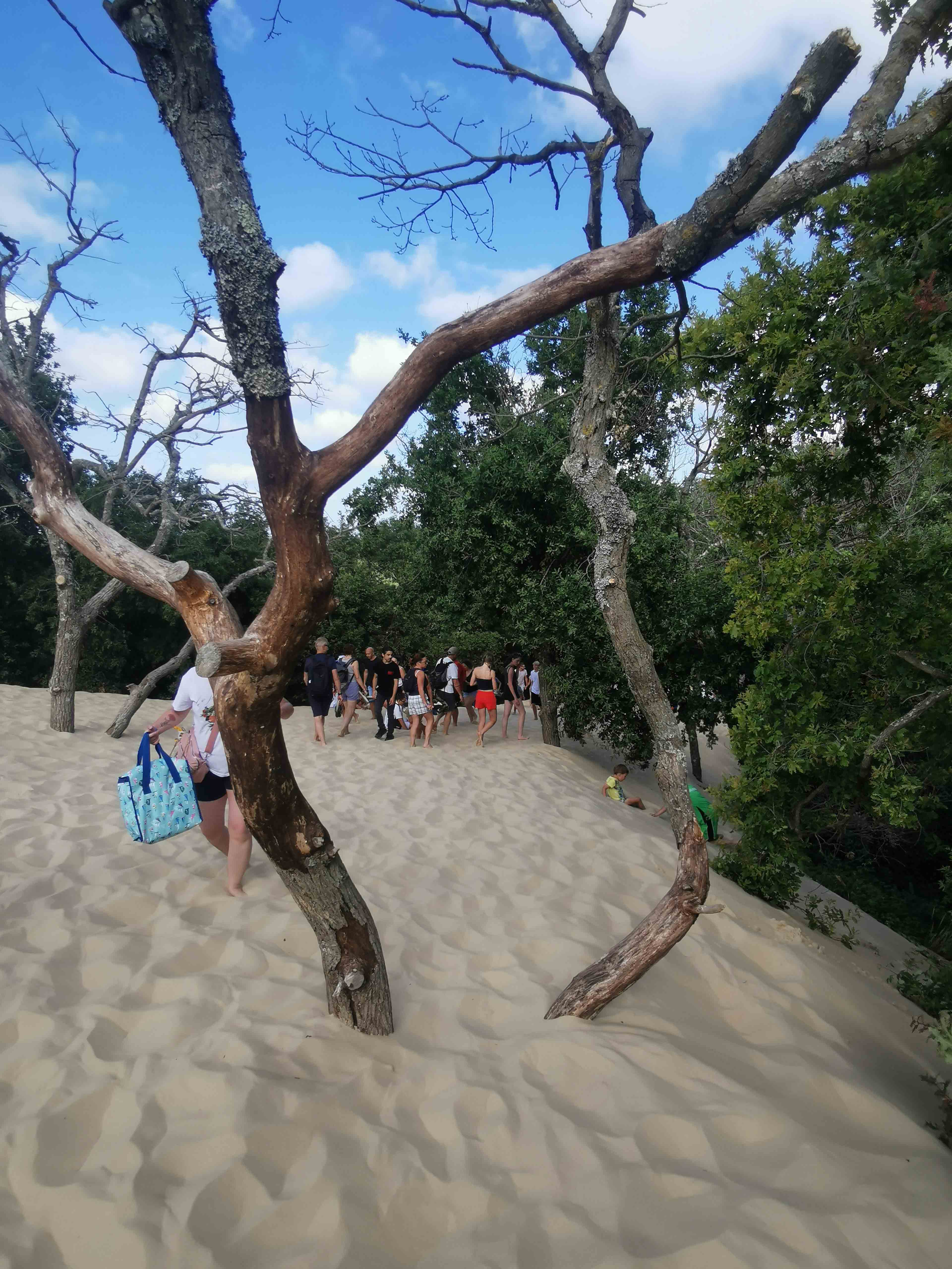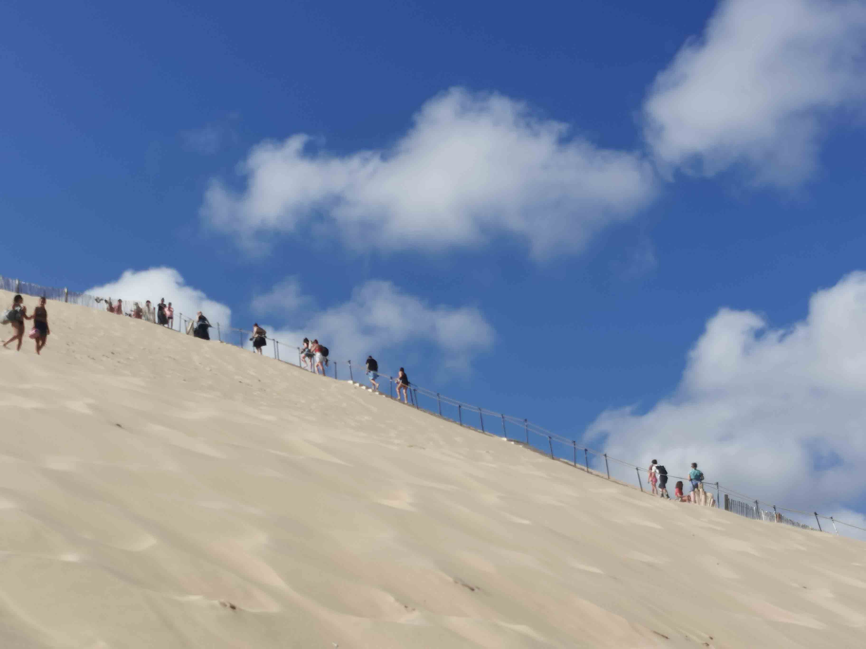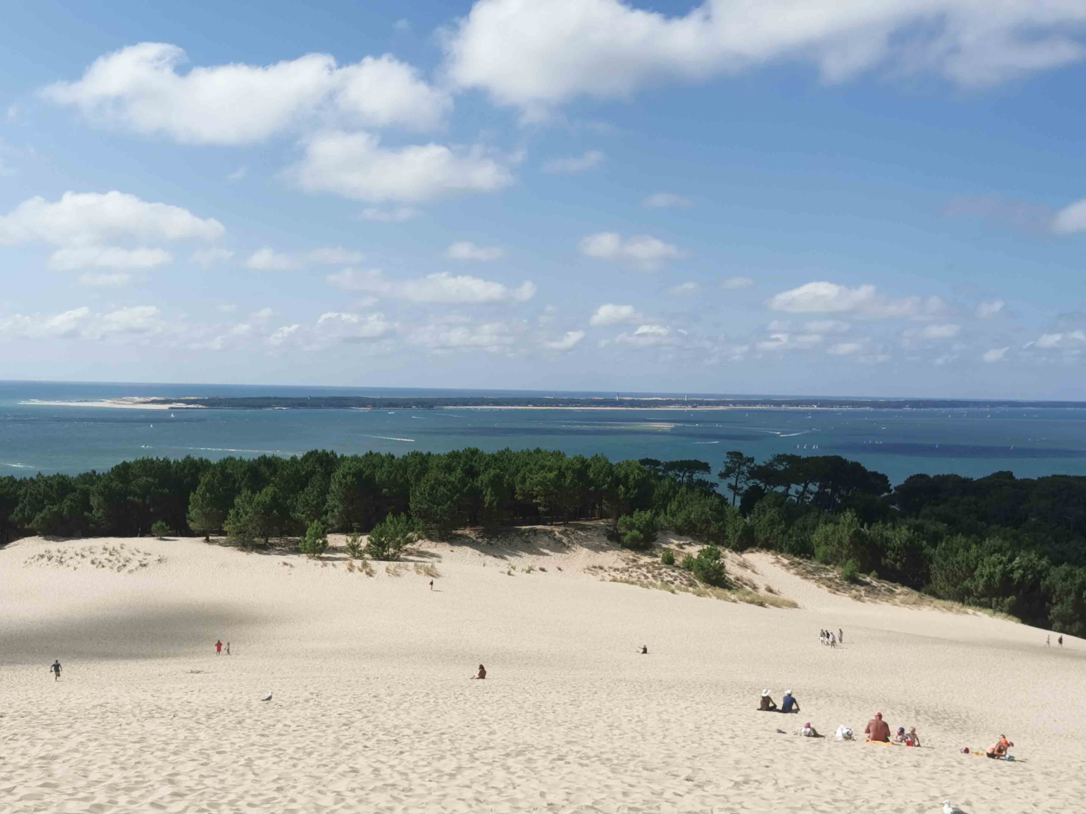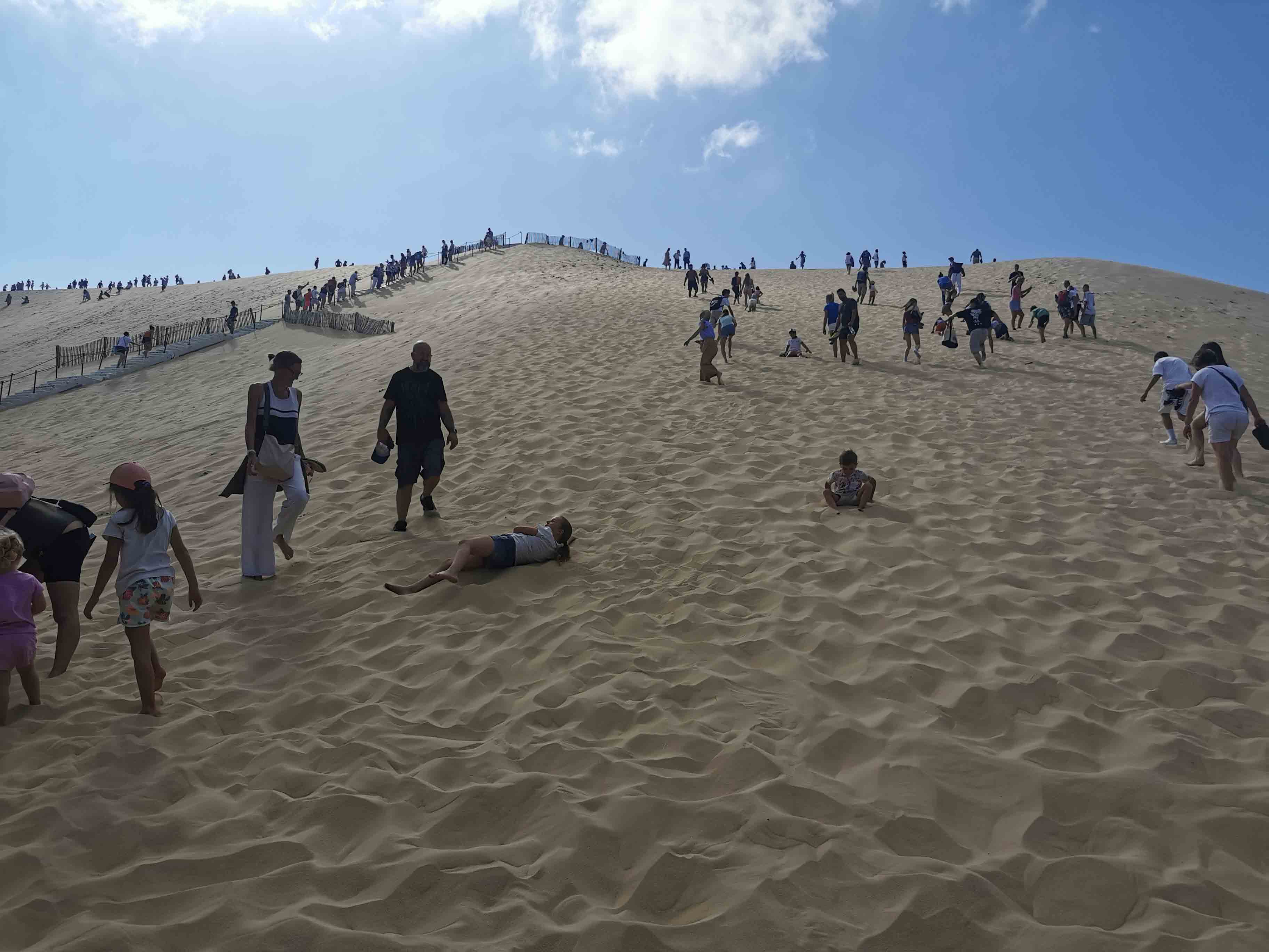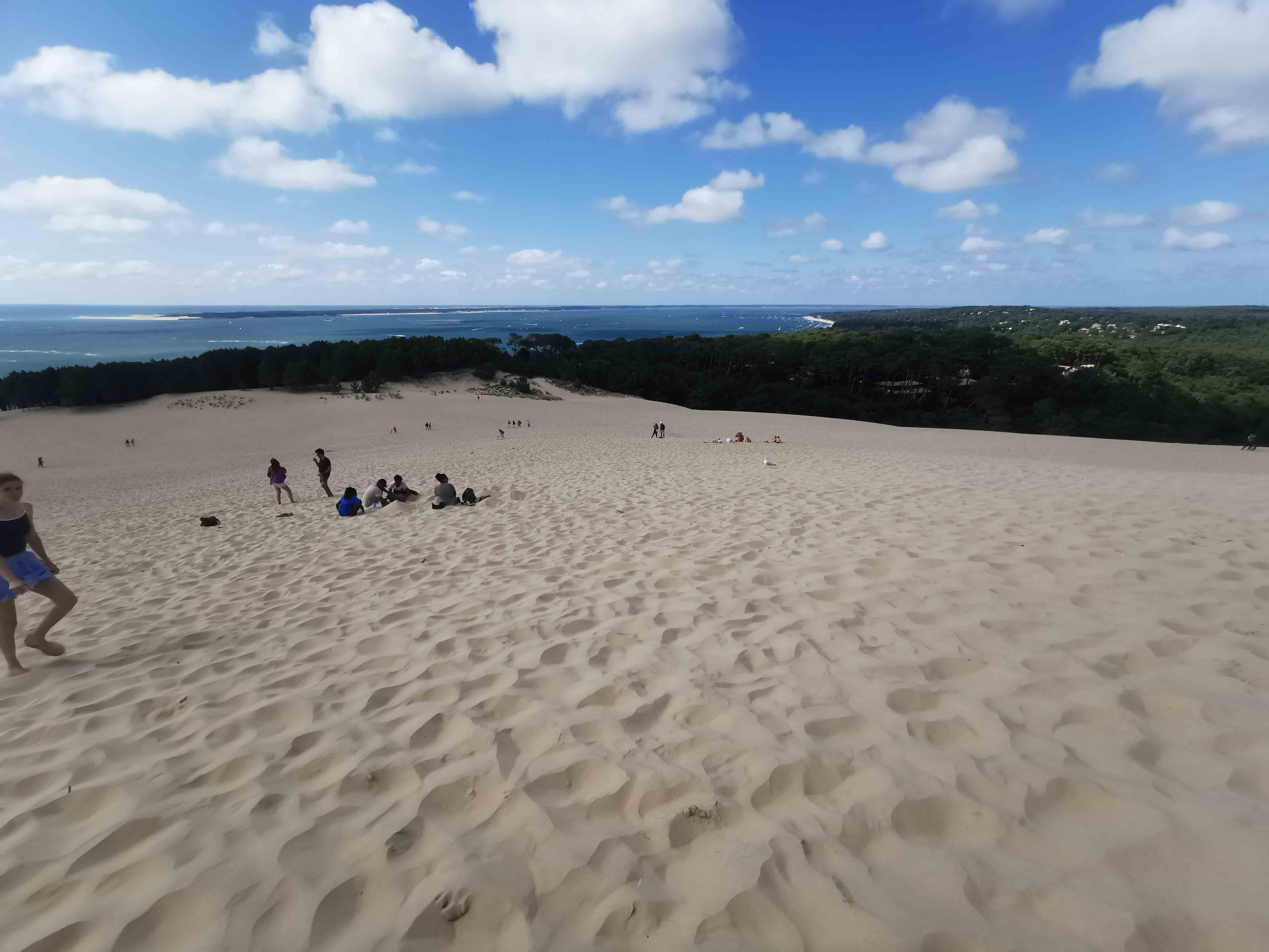Von Mimizan aus führte uns unsere Reise weiter nach Arcachon. Während am Atlantik noch blauer Himmel und Sonne herrschten, zogen im Landesinneren immer mehr Wolken auf. Die Landschaft veränderte sich – und plötzlich, wie eine Fata Morgana, tauchte zwischen den Kiefern etwas auf, das eher an eine Wüste oder an Pyramiden erinnerte: gewaltige Sandberge, die sich über den Wald erhoben.