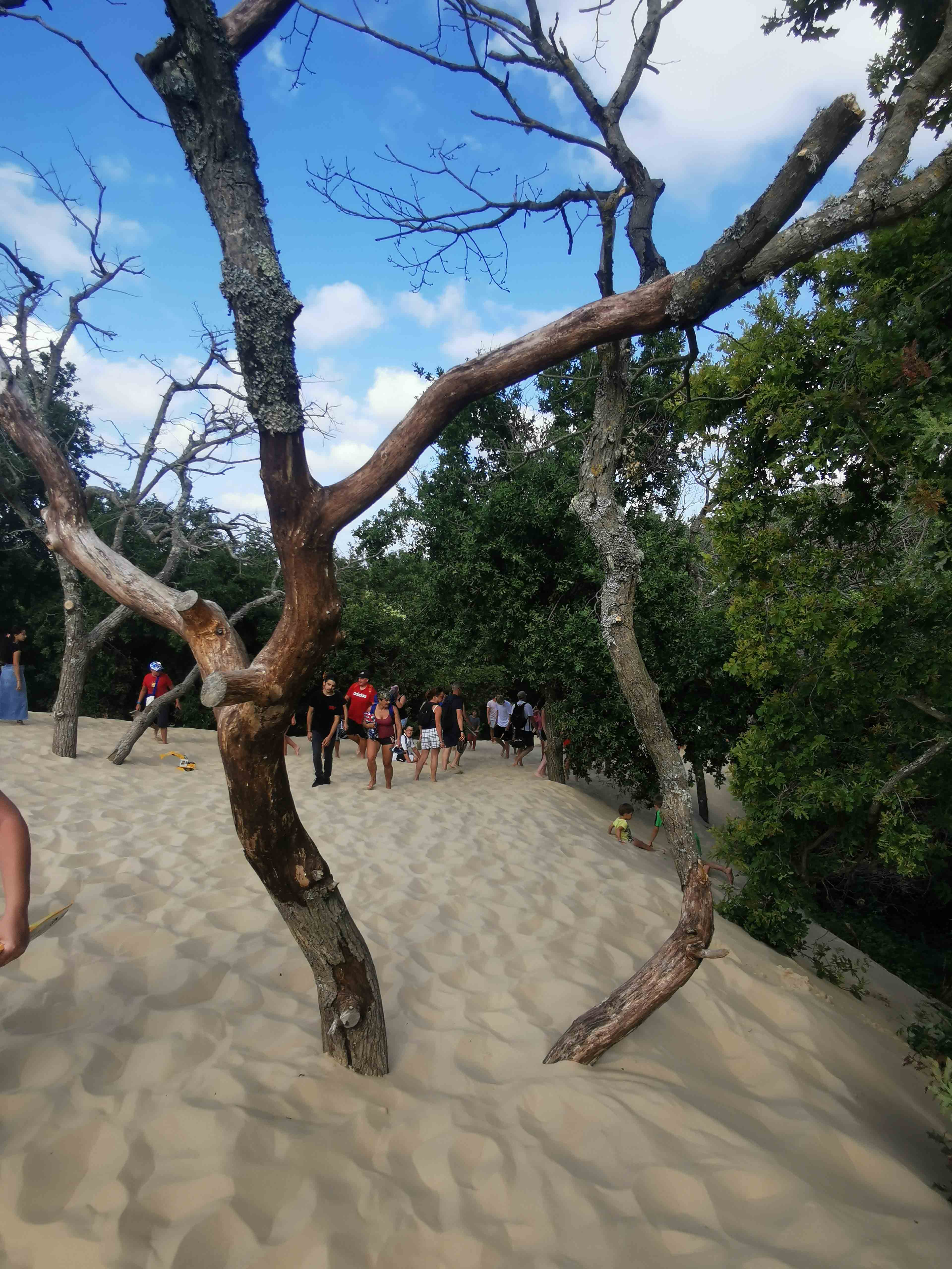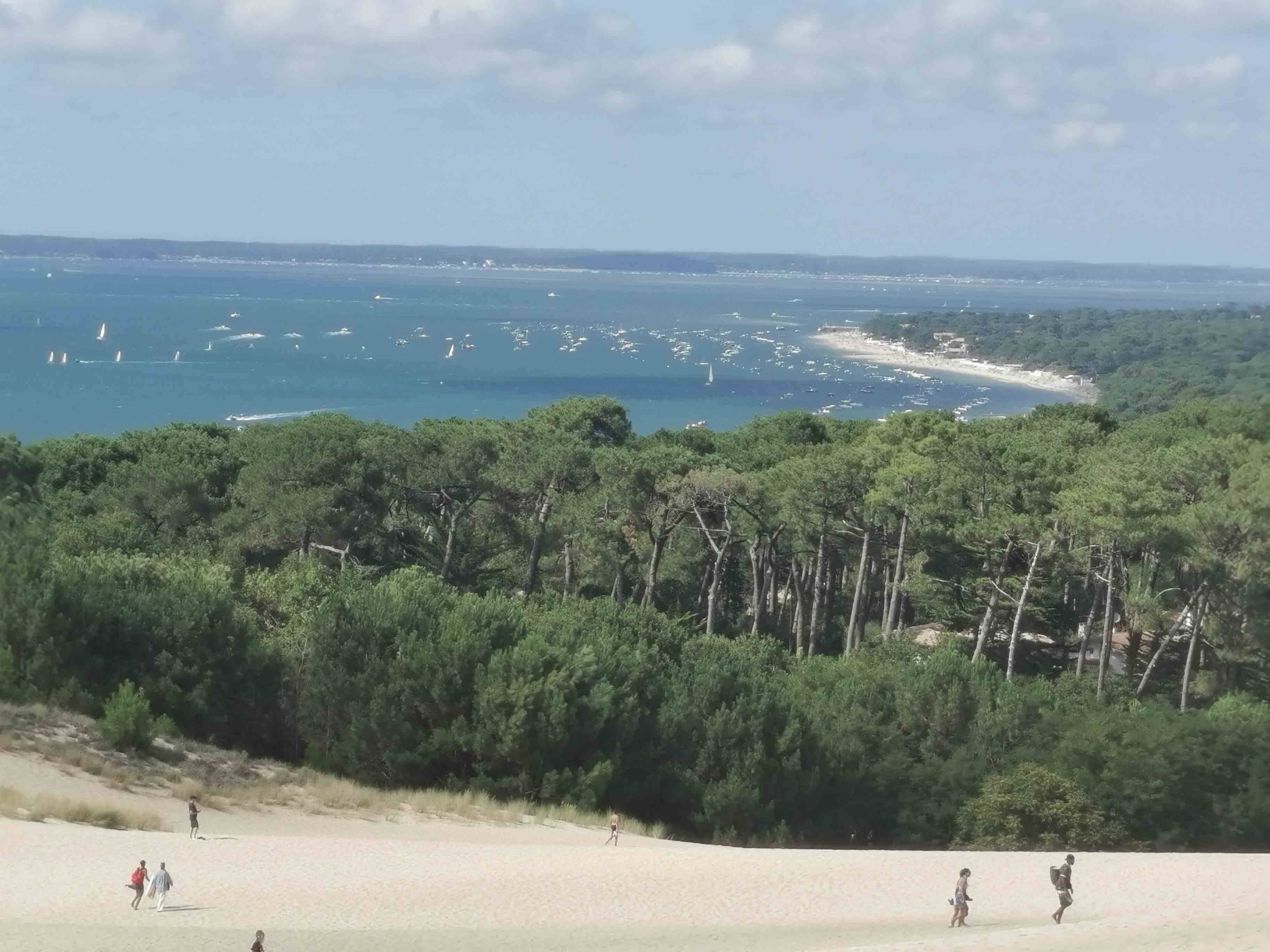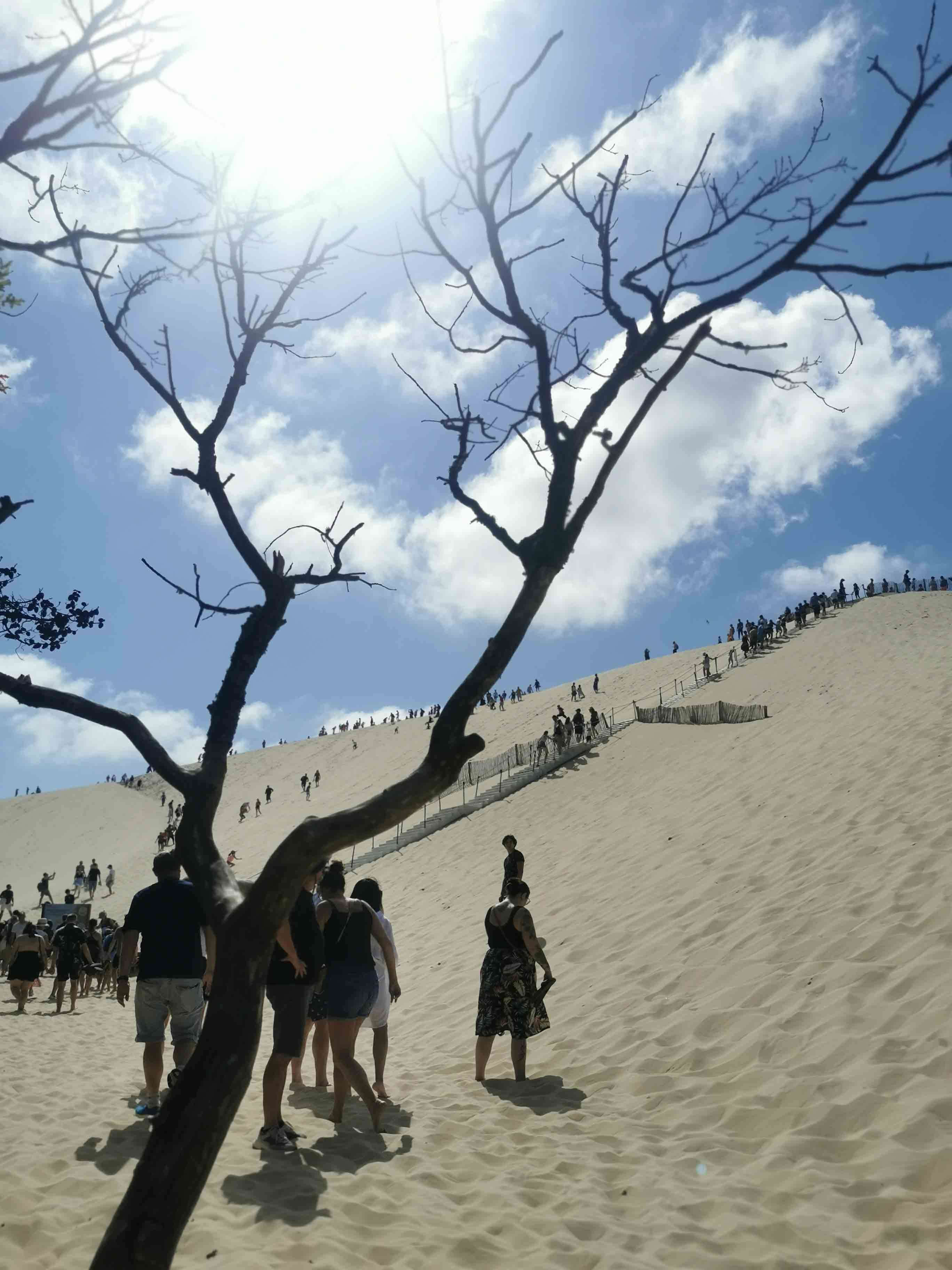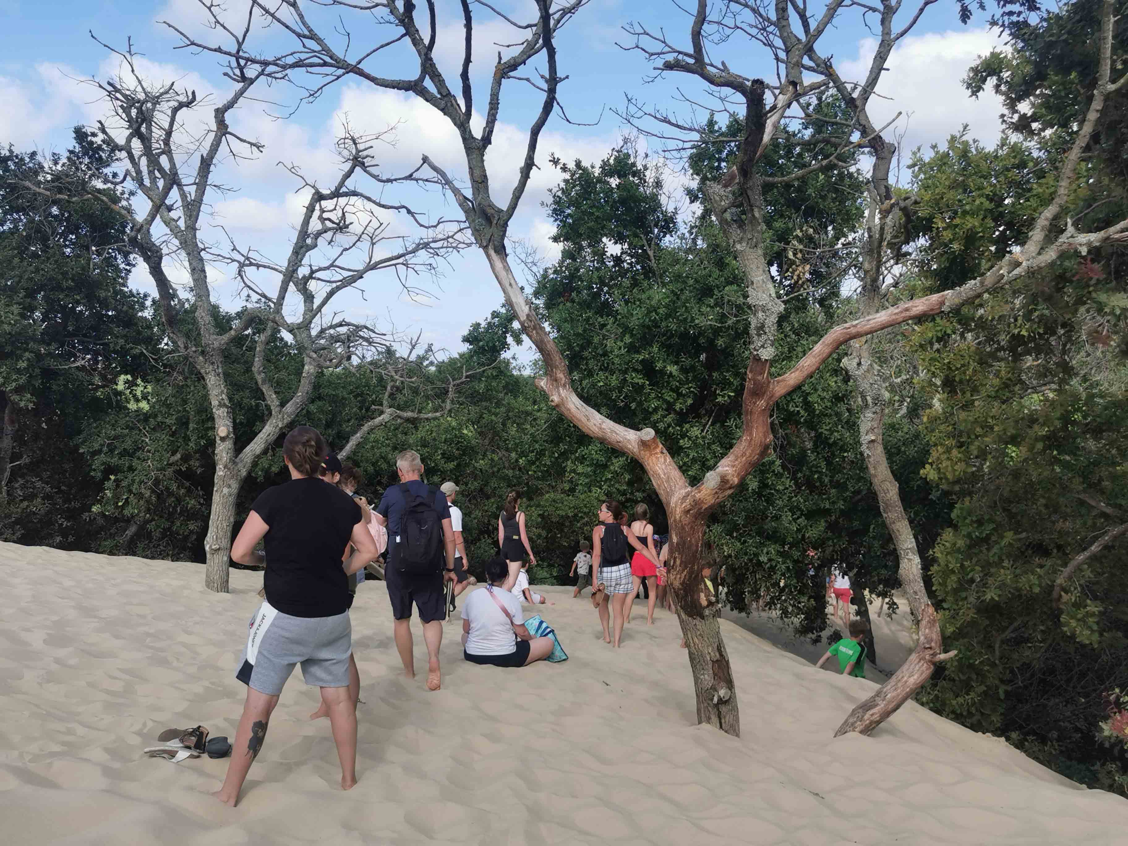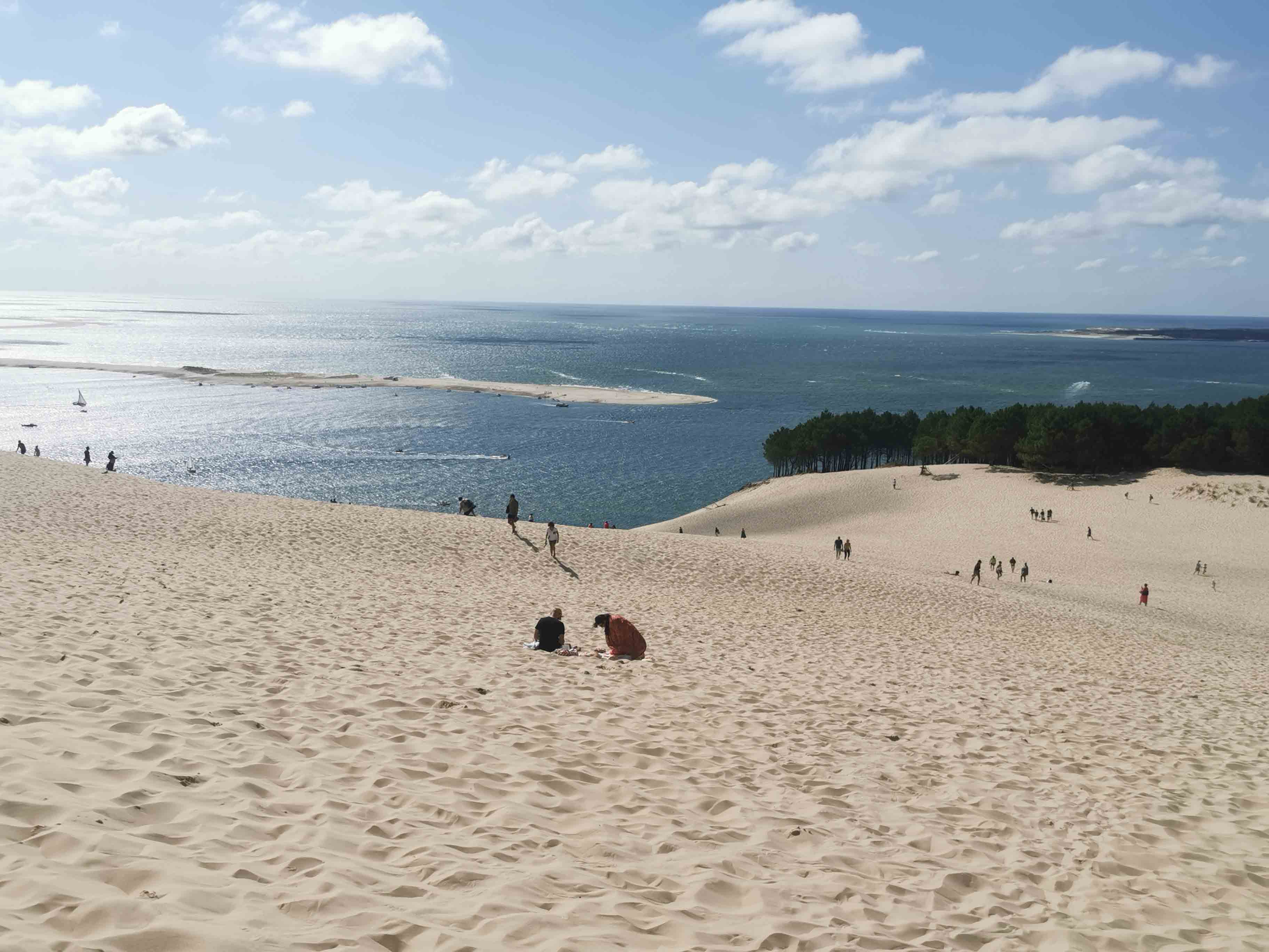 Von Mimizan aus führte uns unsere Reise weiter nach Arcachon. Während am Atlantik noch blauer Himmel und Sonne herrschten, zogen im Landesinneren immer mehr Wolken auf. Die Landschaft veränderte sich – und plötzlich, wie eine Fata Morgana, tauchte zwischen den Kiefern etwas auf, das eher an eine Wüste oder an Pyramiden erinnerte: gewaltige Sandberge, die sich über den Wald erhoben.