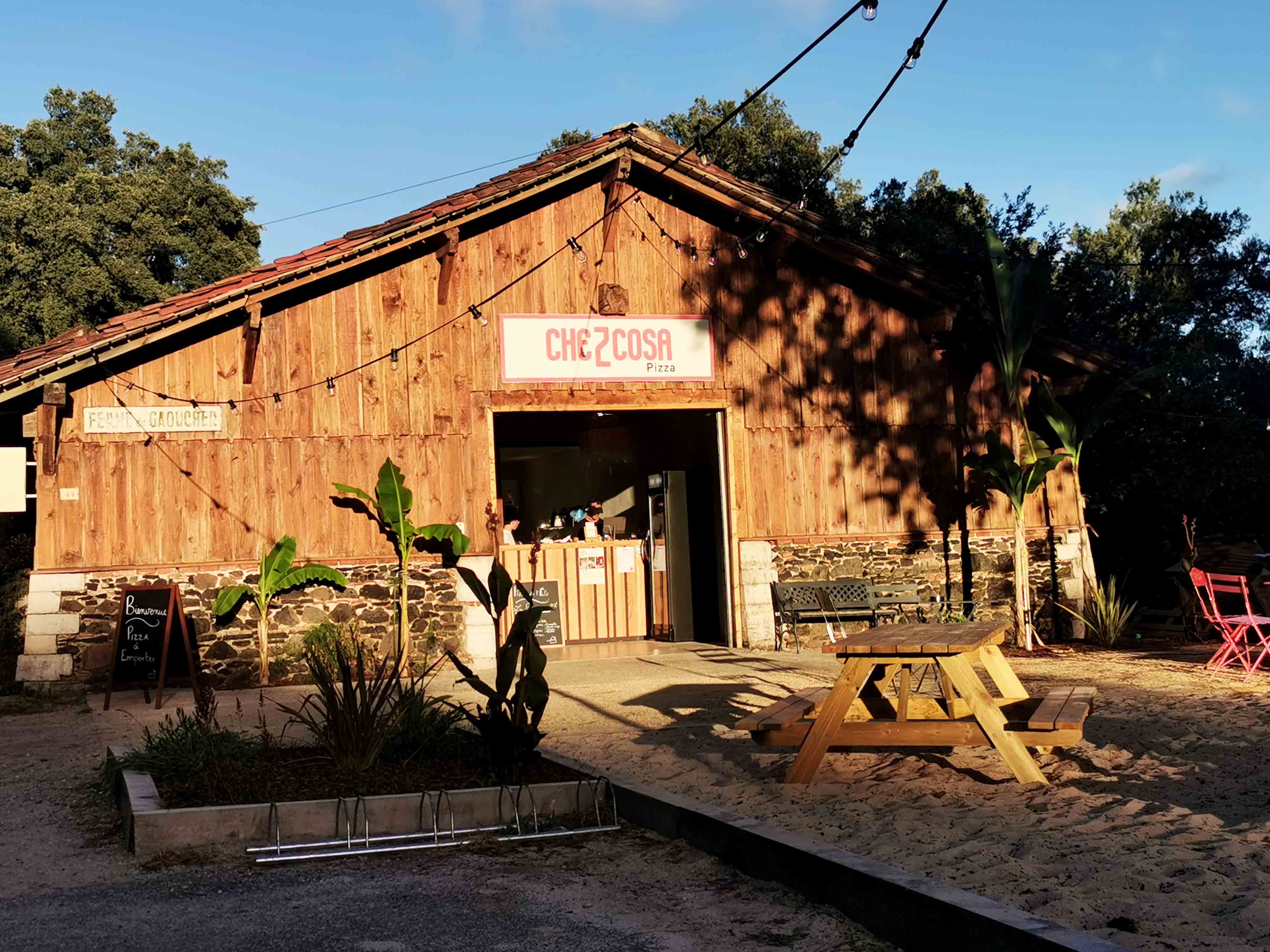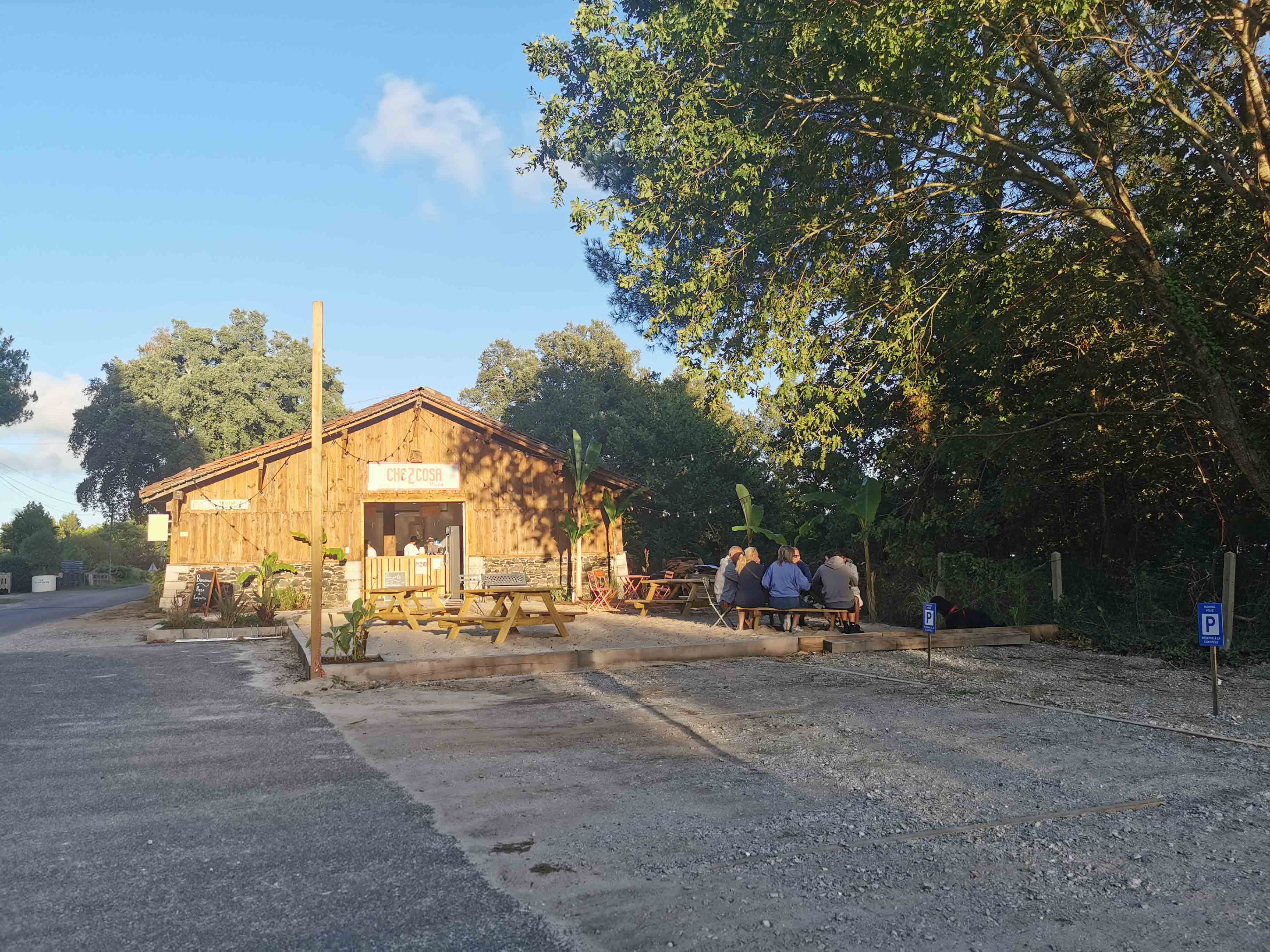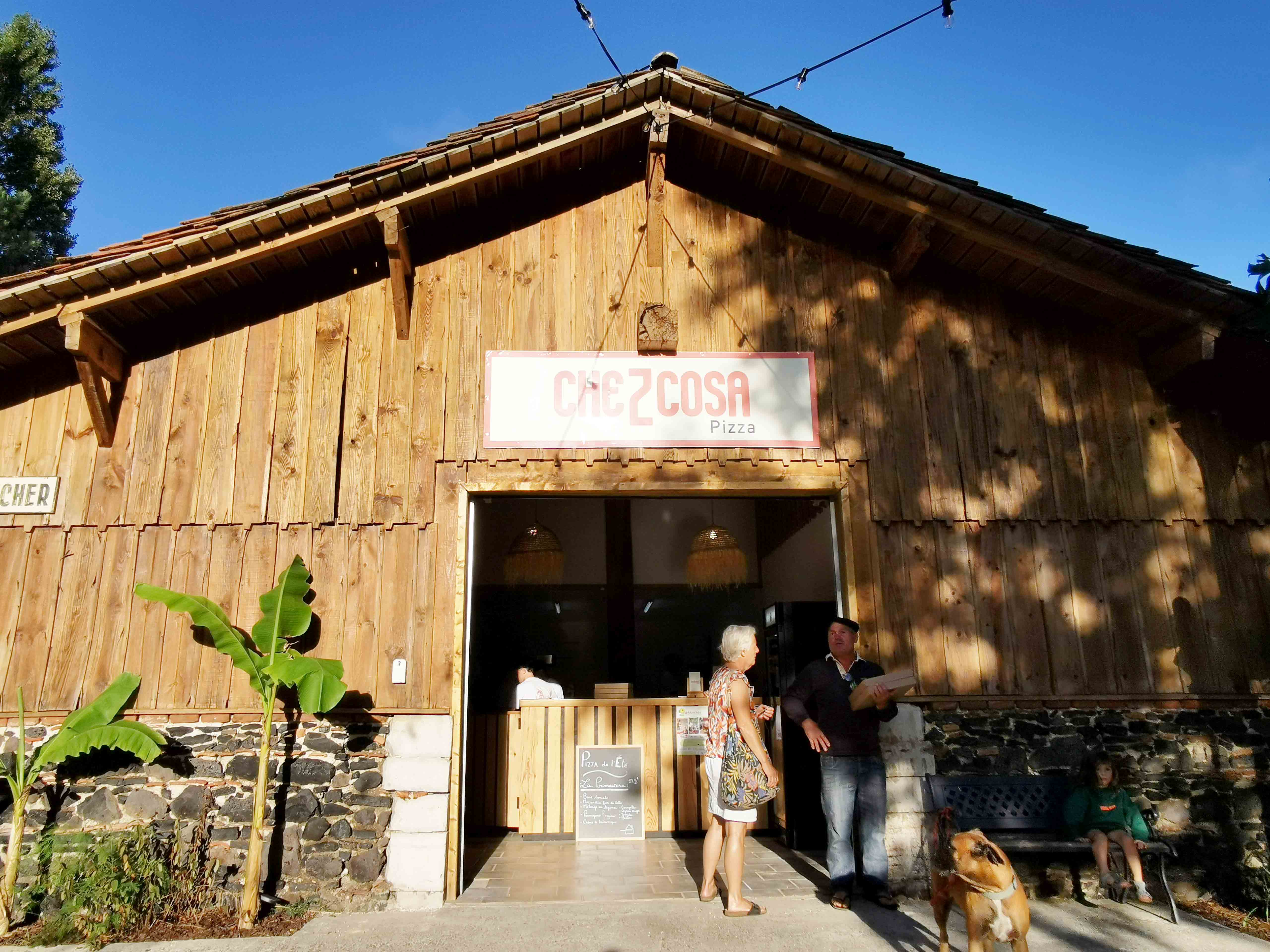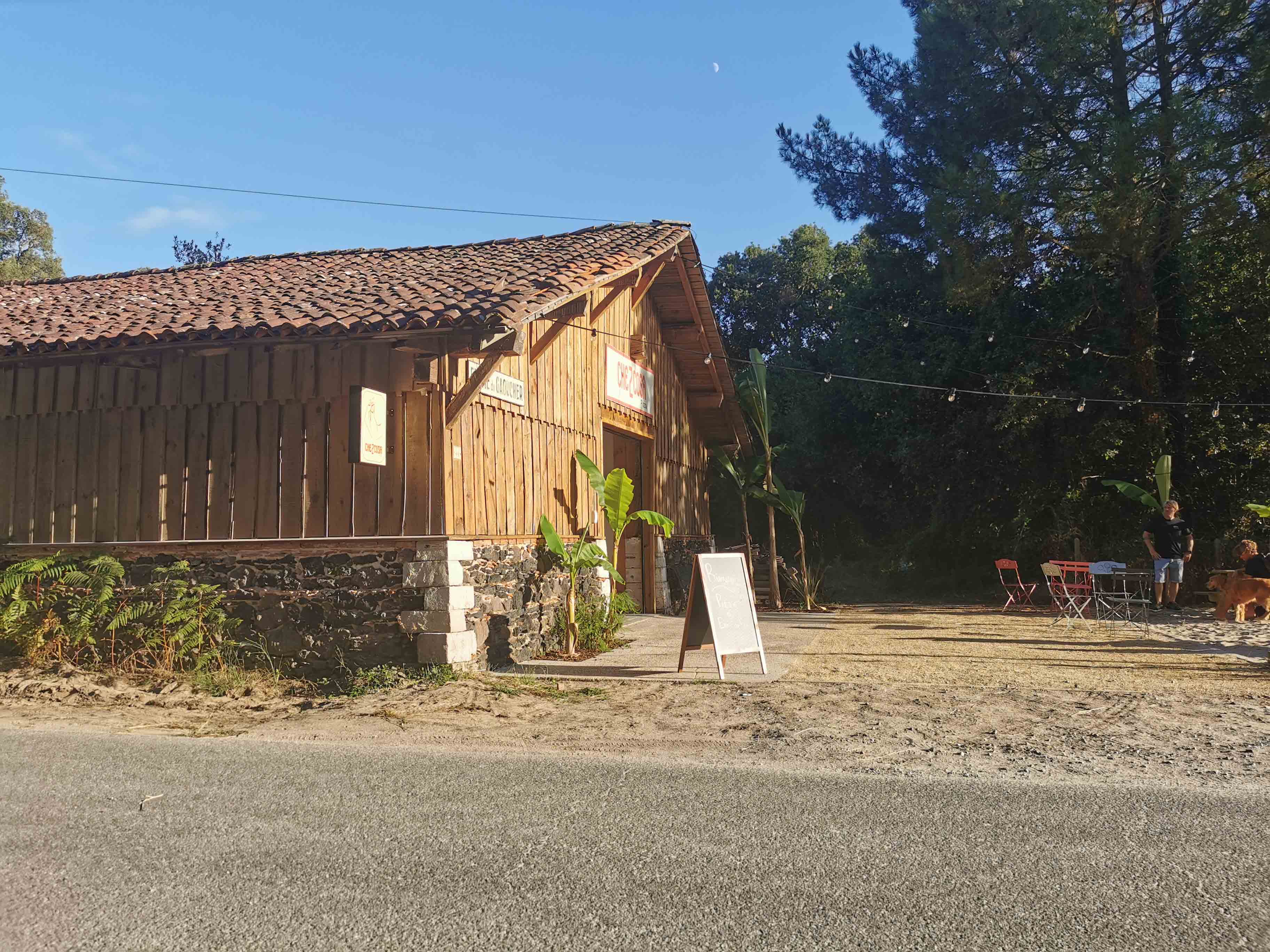 Auf unserer Rückfahrt zur Ferienwohnung entdeckten wir am Abend zufällig ein echtes Highlight: „Che Z Cosa“ – eine charmante, urige Pizzeria mitten im Gebiet von Vielle Saint-Girons (Adresse: 44 Route de Monlon, 40560 Vielle Saint-Girons). Schon beim Vorbeifahren fiel uns der gemütliche Scheunenverkauf auf – ein Ort, der sofort Neugier und Appetit weckte.