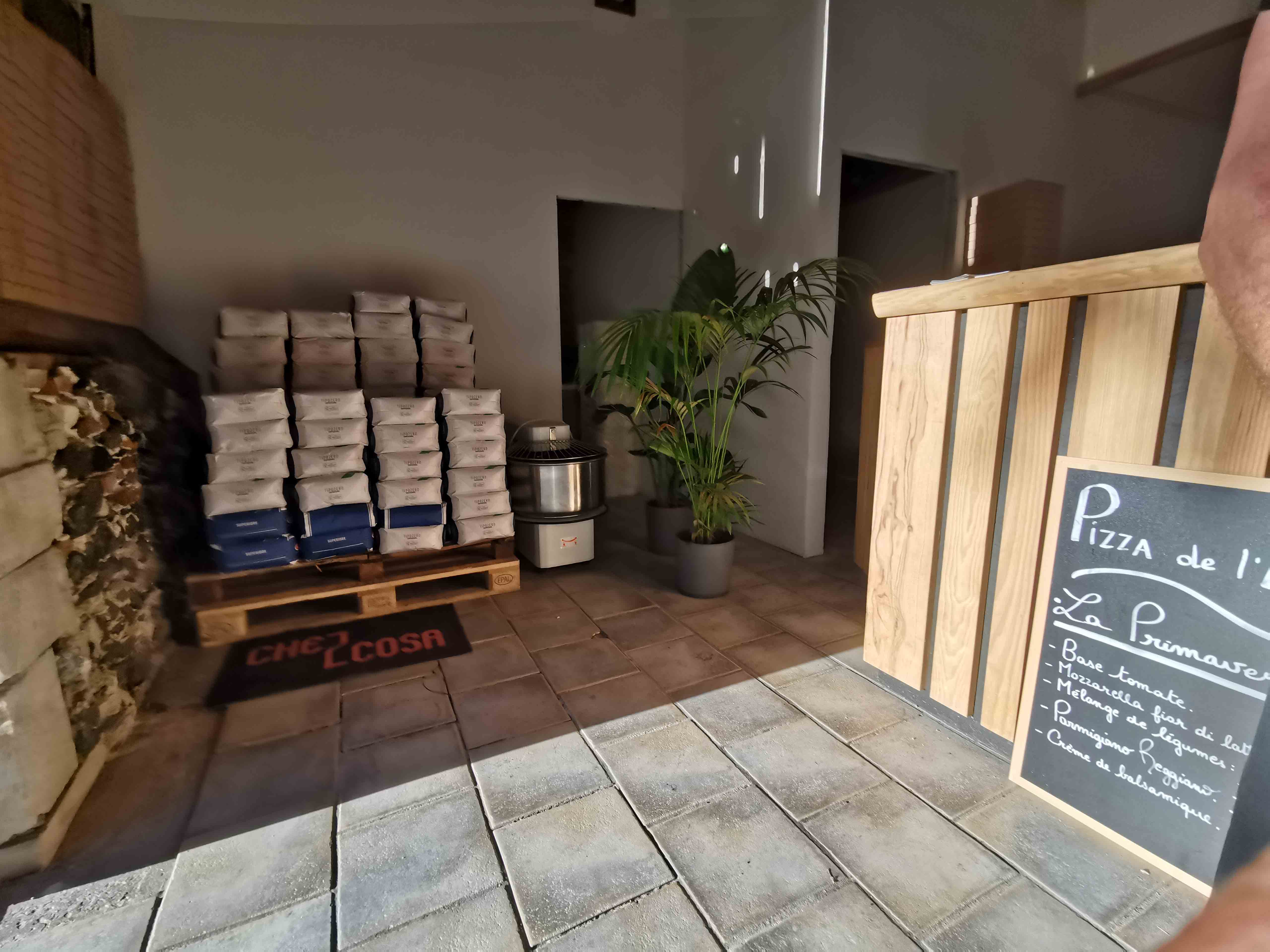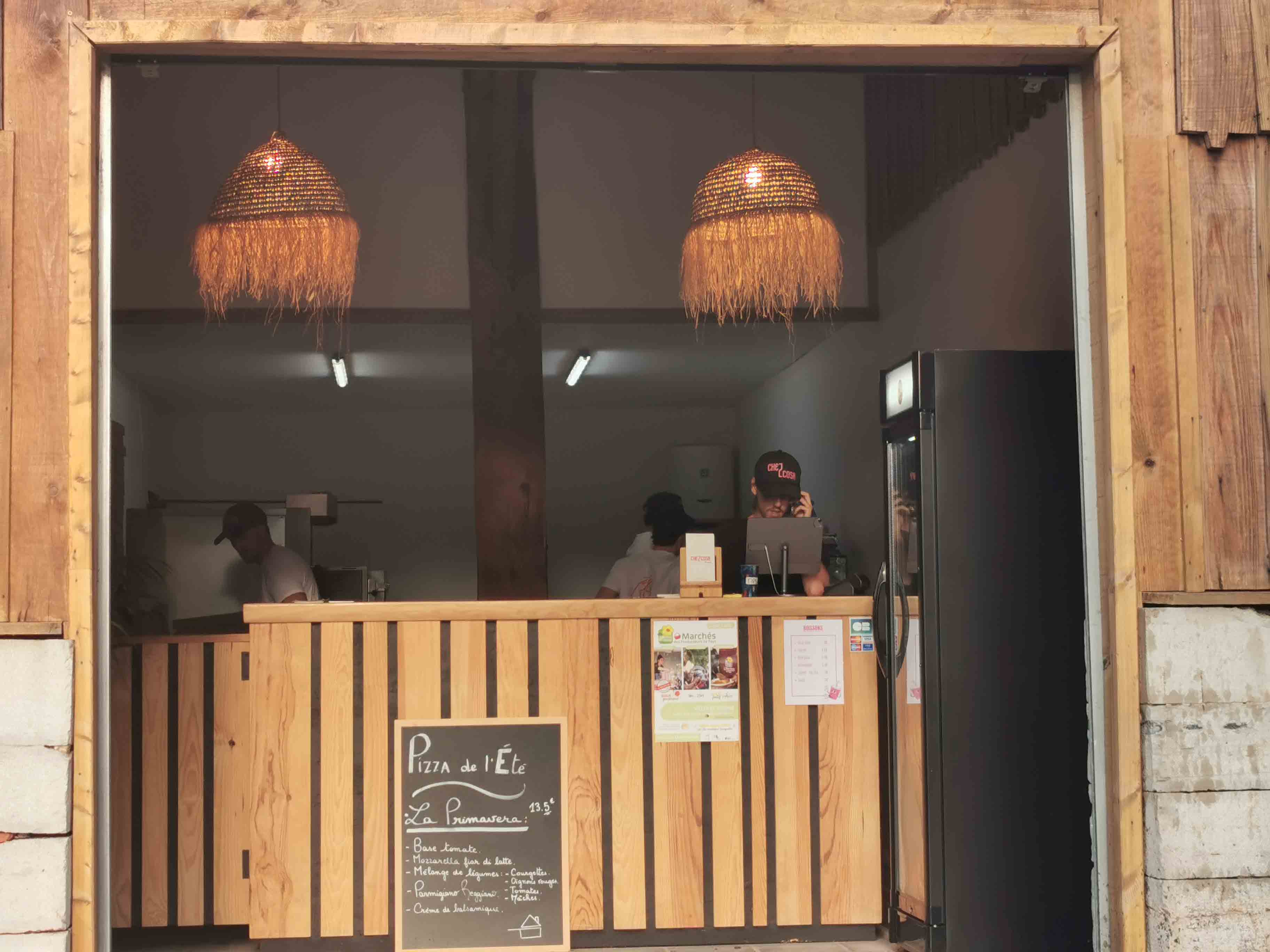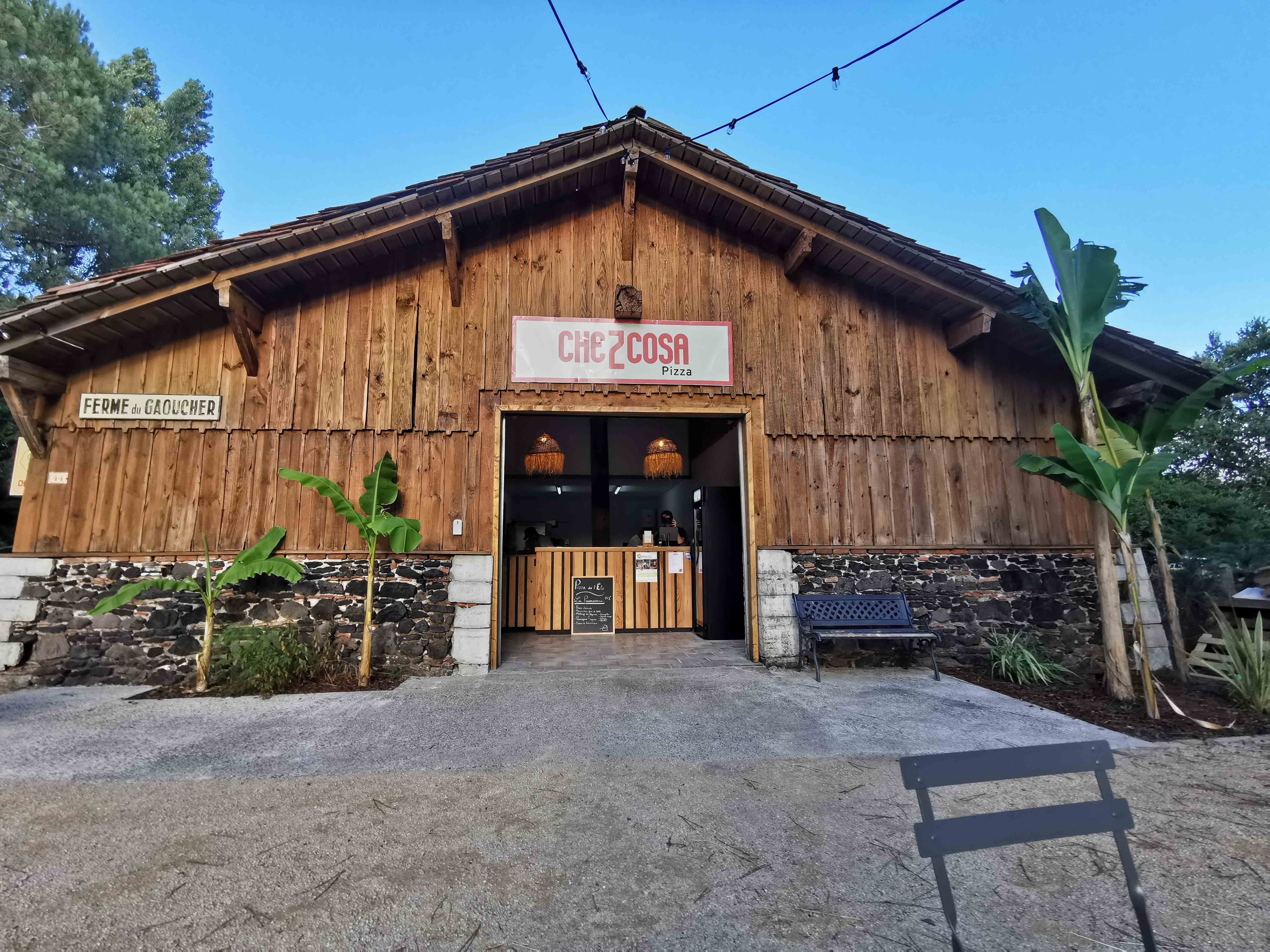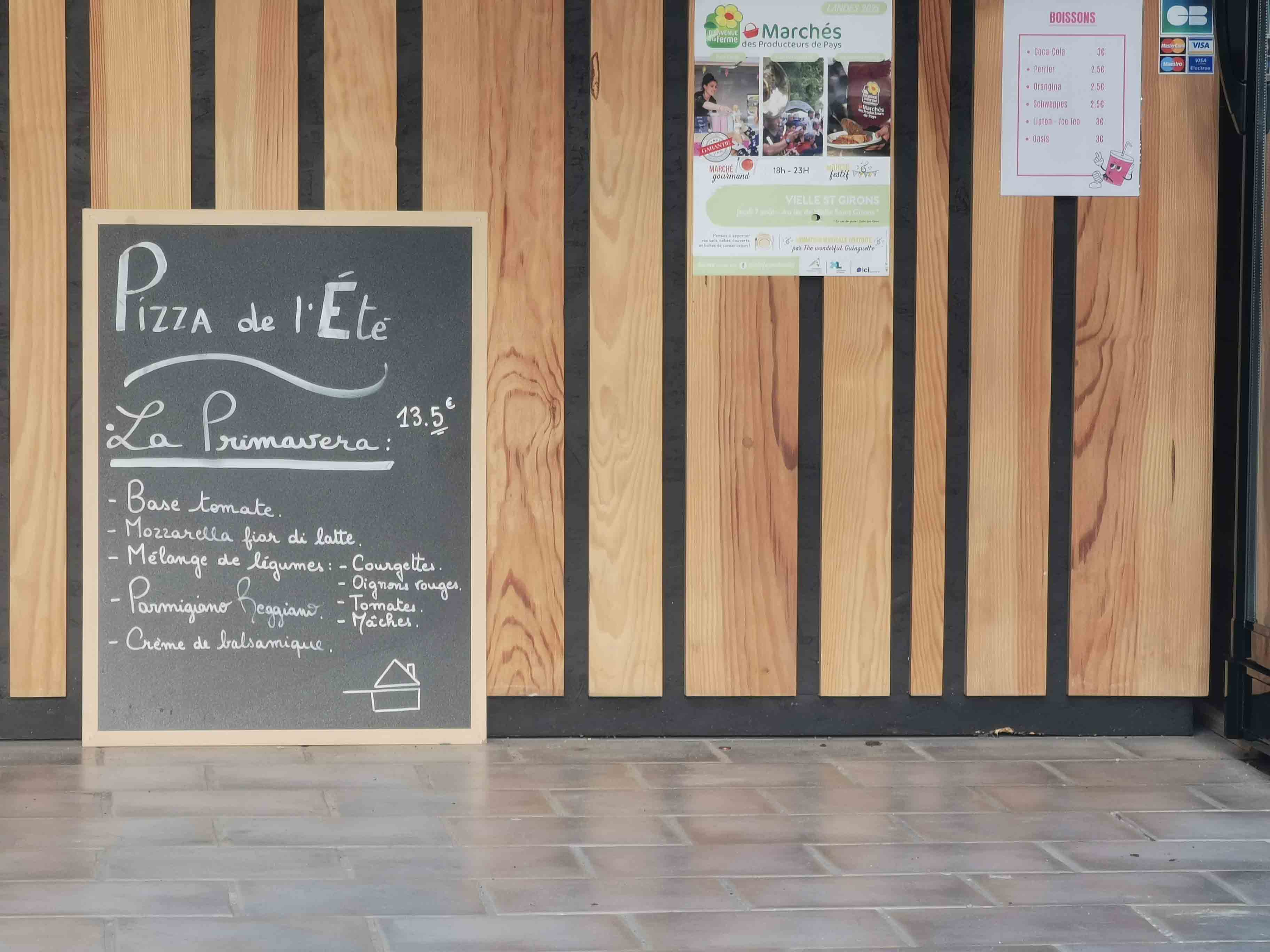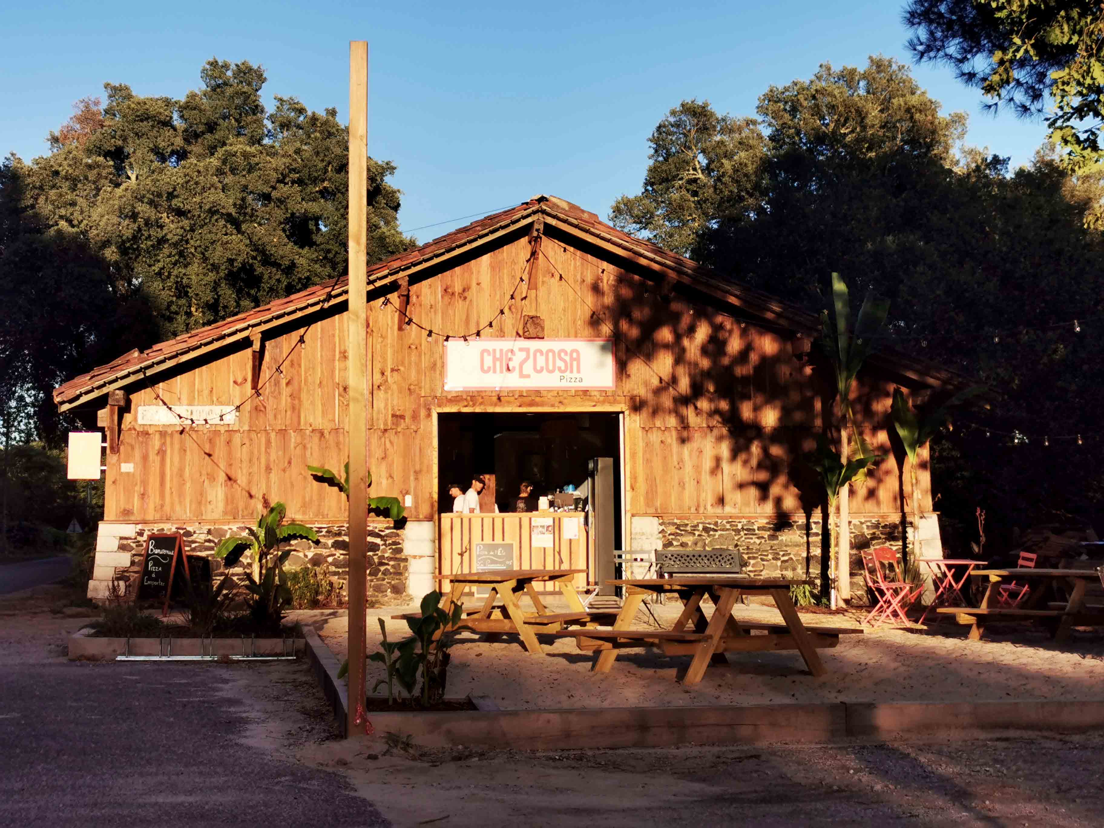 Auf unserer Rückfahrt zur Ferienwohnung entdeckten wir am Abend zufällig ein echtes Highlight: „Che Z Cosa“ – eine charmante, urige Pizzeria mitten im Gebiet von Vielle Saint-Girons (Adresse: 44 Route de Monlon, 40560 Vielle Saint-Girons). Schon beim Vorbeifahren fiel uns der gemütliche Scheunenverkauf auf – ein Ort, der sofort Neugier und Appetit weckte.