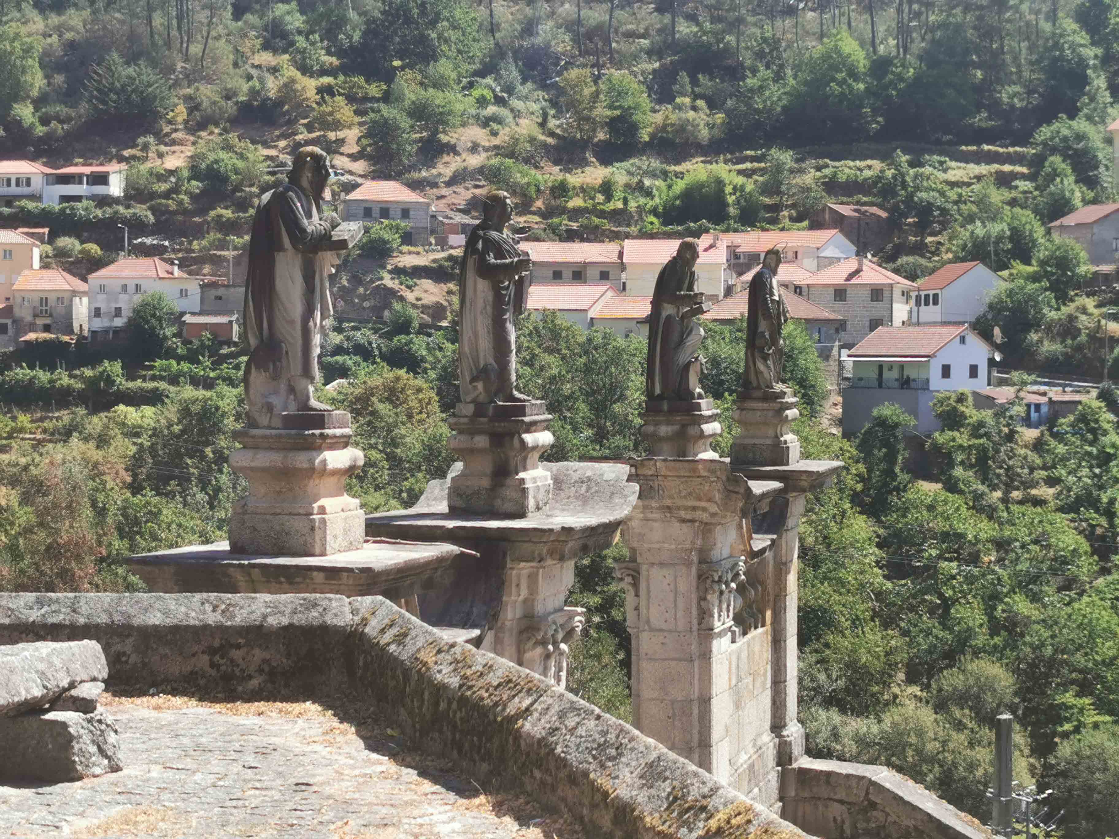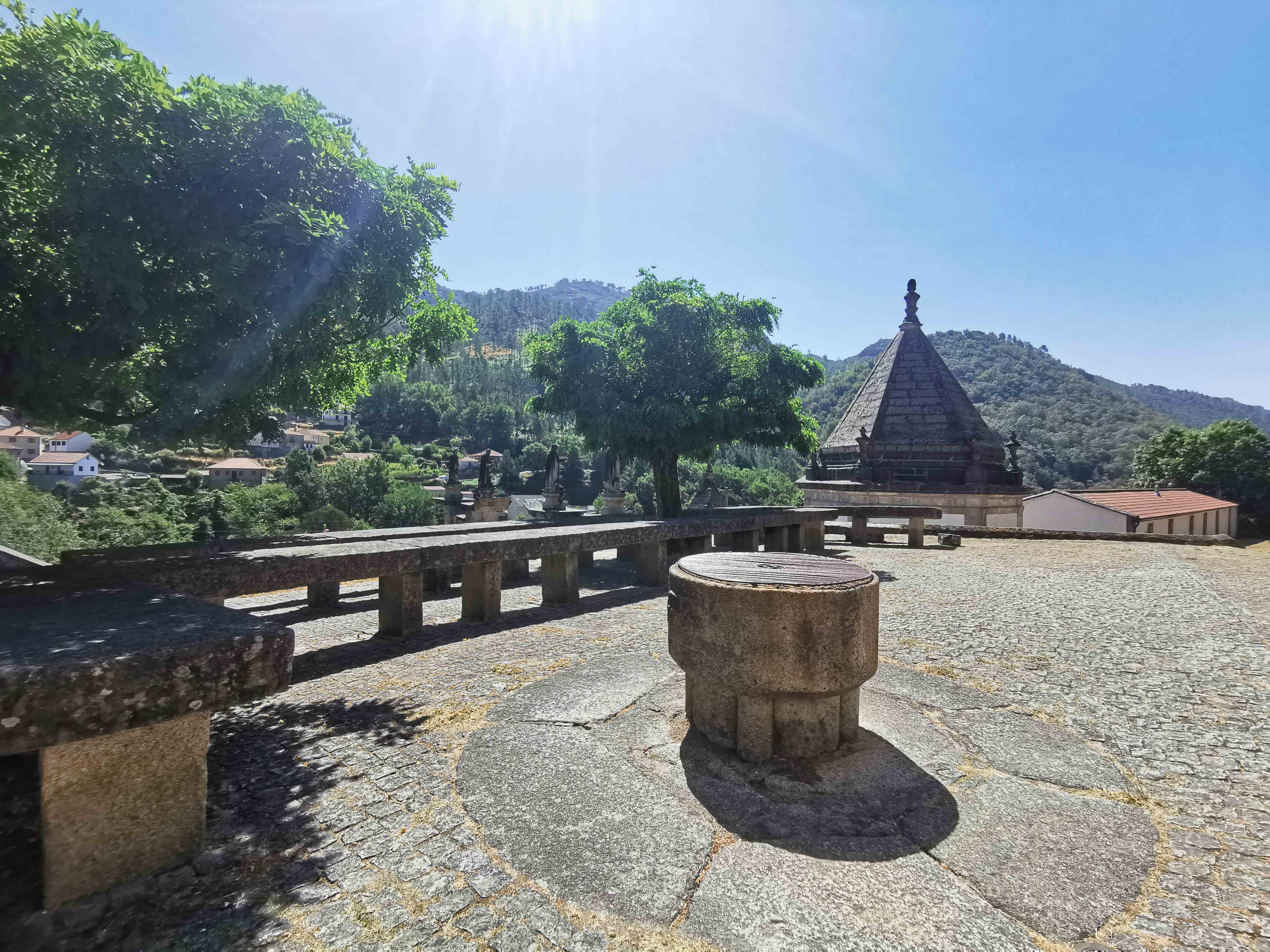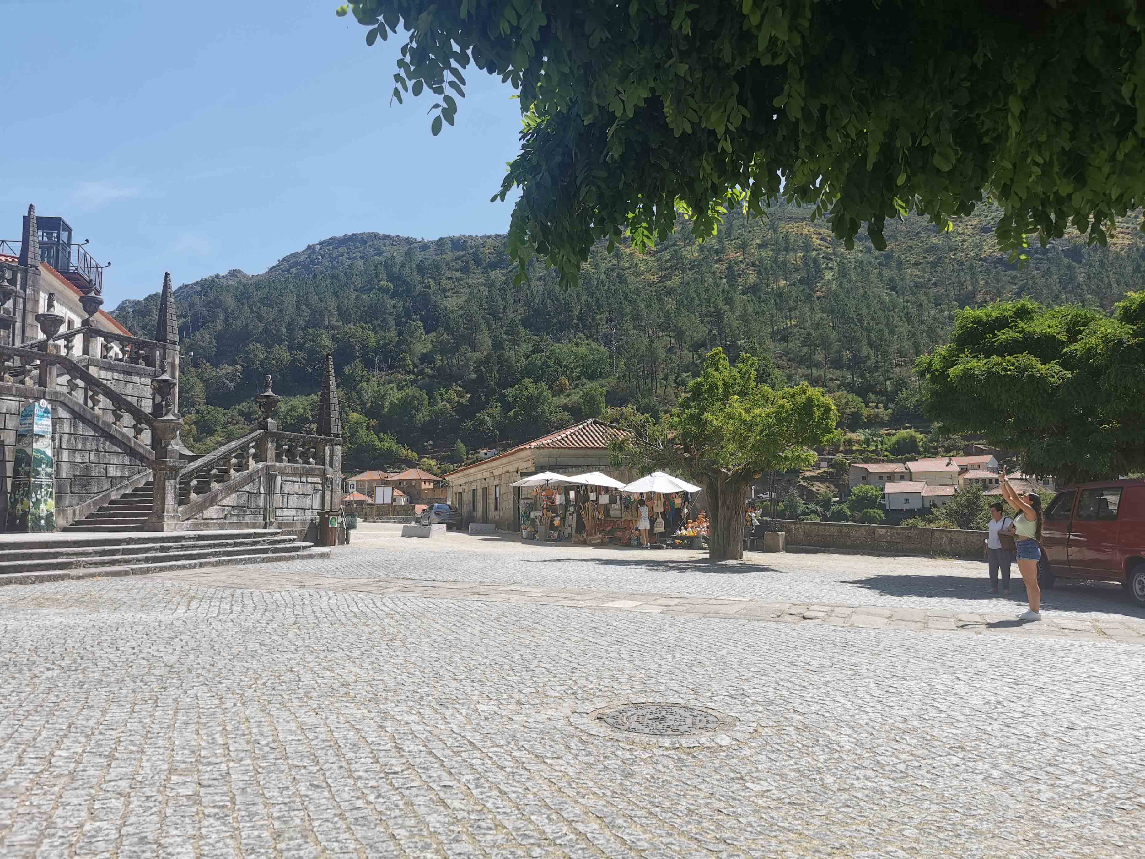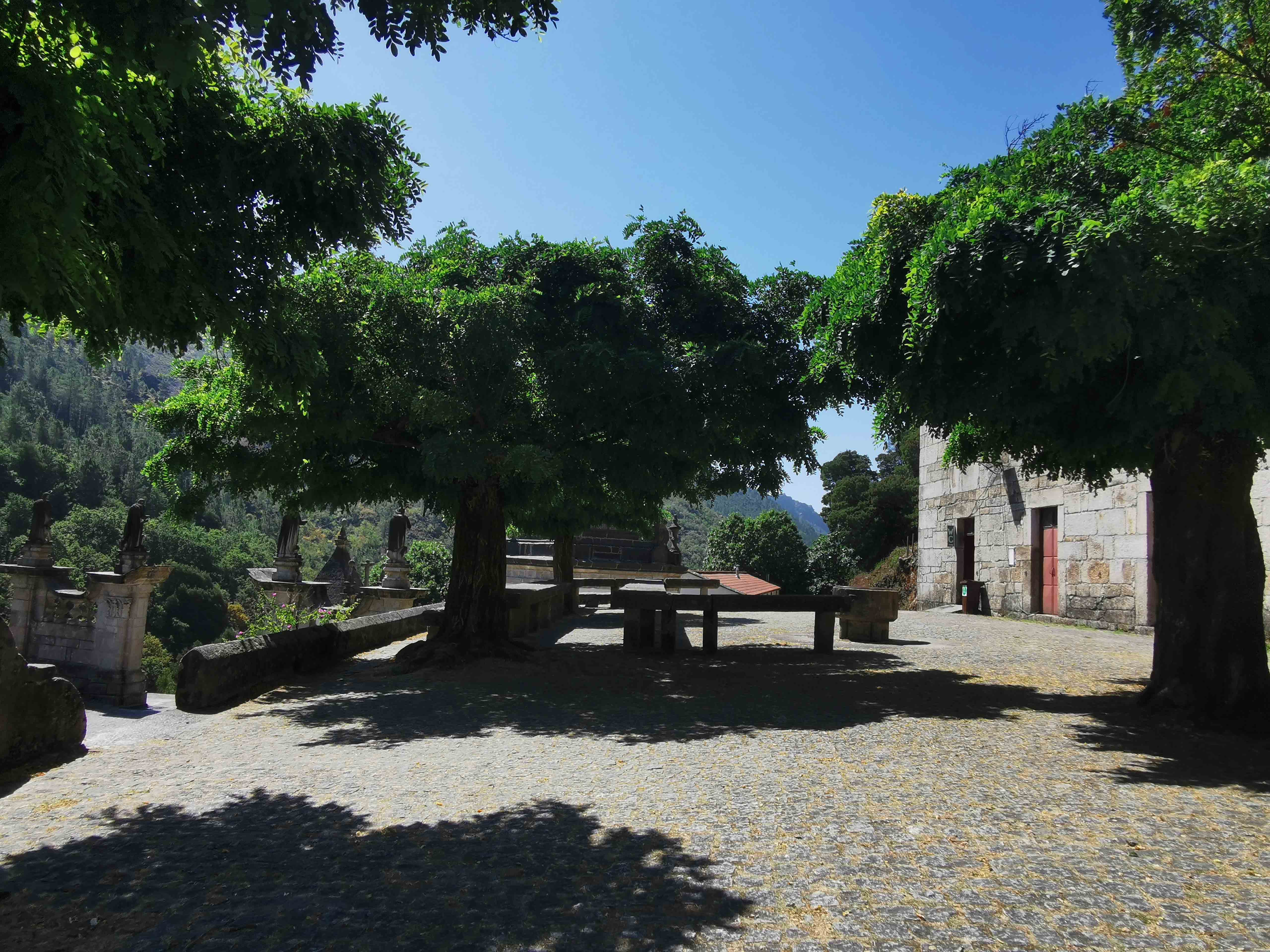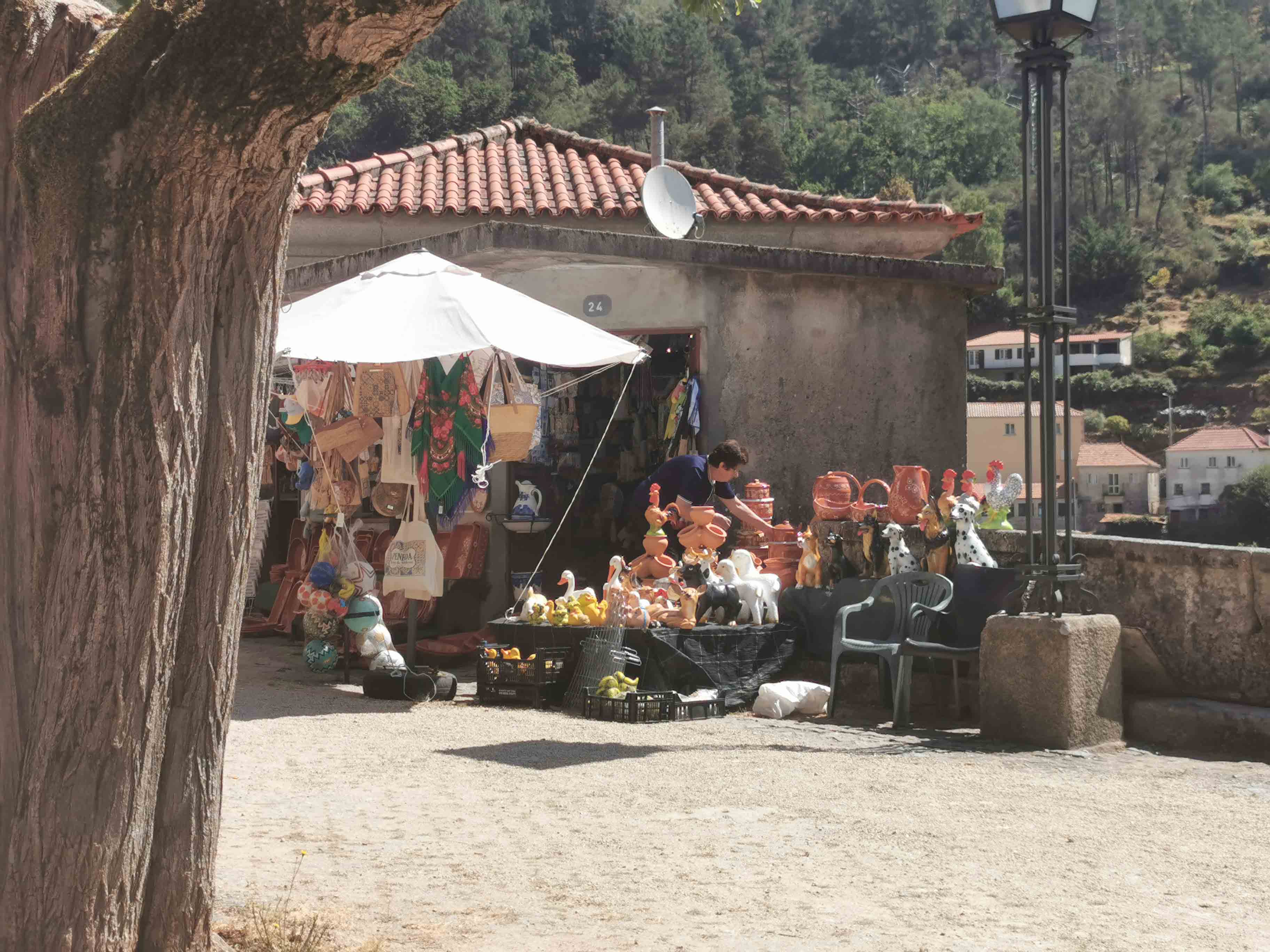 Vor der Kirche werden häufig **regionale Handwerksprodukte** angeboten – vor allem **Töpfereien, kleine Holzfiguren und religiöse Andenken**. Es lohnt sich, ein wenig zu stöbern, denn vieles ist handgemacht und spiegelt die Kultur des Minho-Gebirges wider.