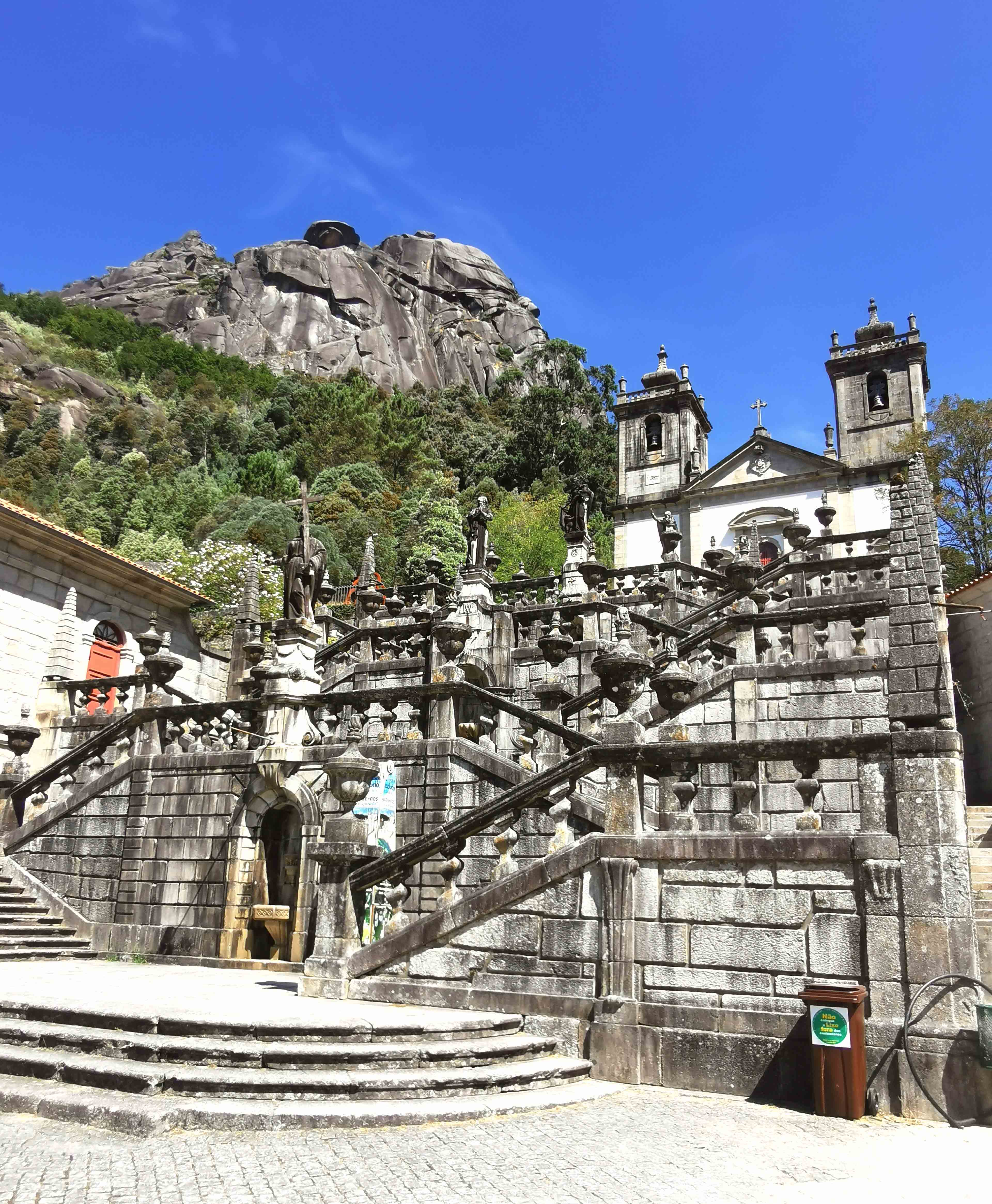 Das Santuario liegt malerisch am **rechten Ufer des Flusses Peneda**, direkt unter einem imposanten Granitfelsen, dem sogenannten **Penedo da Meadinha**. Diese natürliche Kulisse verleiht dem Ort eine einzigartige, fast mystische Atmosphäre. Wer hier ankommt, spürt sofort, dass er einen besonderen Platz betreten hat – einen Ort des Friedens, der Besinnung und der Geschichte.