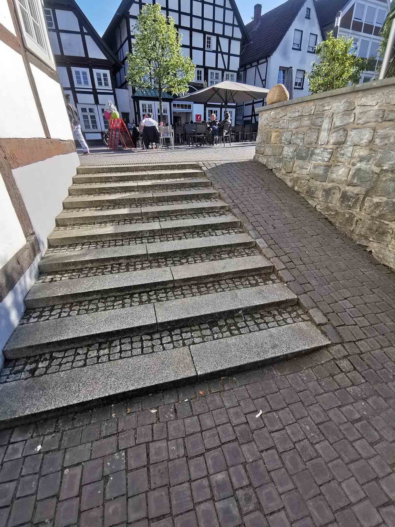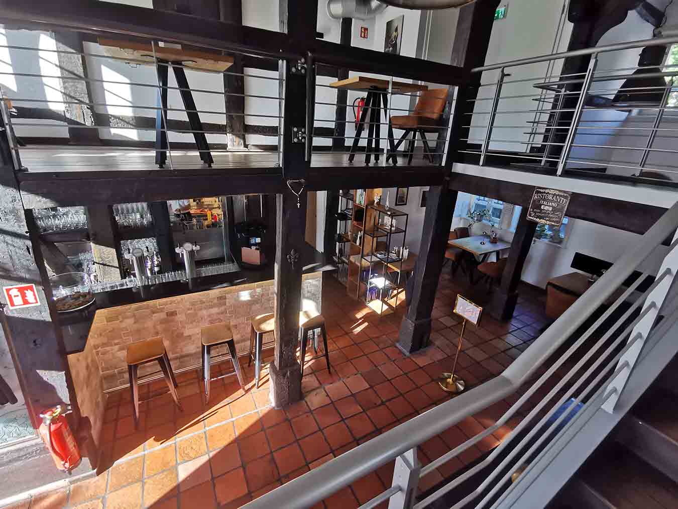 Ein Stuhl zur Seite geschoben, mein efix Rollstuhl passte perfekt unter den Tisch – und schon saßen wir mittendrin. Der ganze Platz drumherum lädt zum Verweilen ein, altes Fachwerk trifft moderne Innenräume, und die Küche ist genau so, wie Italien schmeckt: bunt, herzlich und voller wunderbarer Gerüche und Geschmäcker.