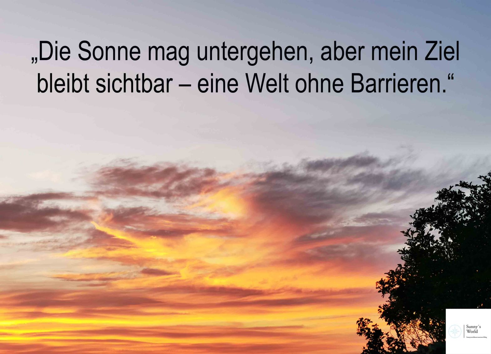 „Die Sonne mag untergehen, aber mein Ziel bleibt sichtbar – eine Welt ohne Barrieren.“