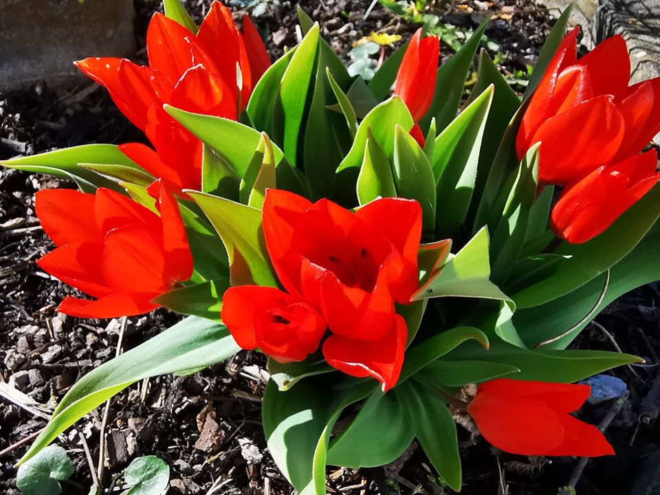 Rote Tulpen im Vorgarten
