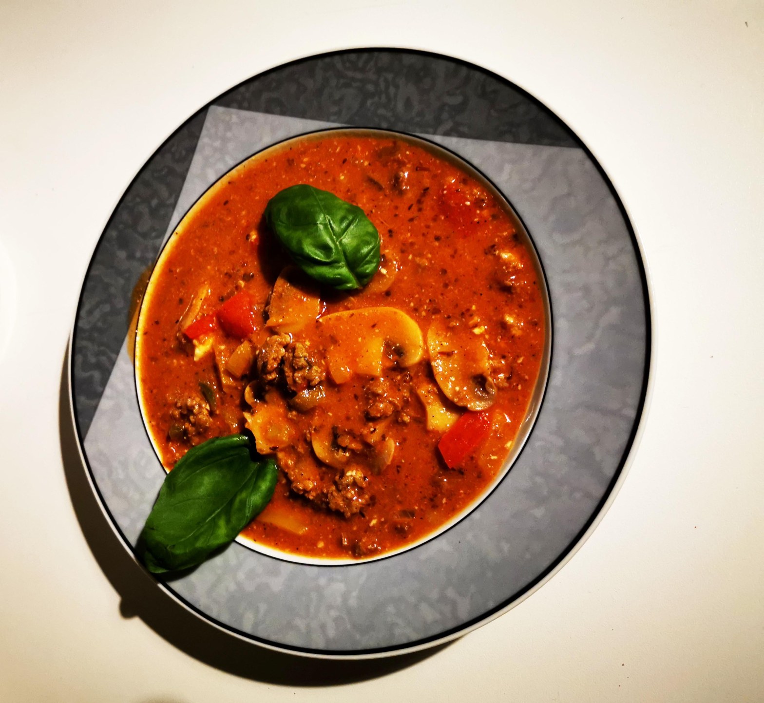 Vegetarisch geht es auch, einfach das Hackfleisch weglassen und mehr Paprikaschoten und Pilze verwenden